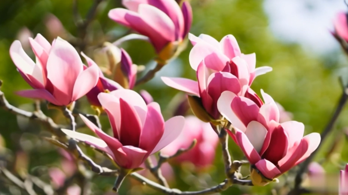 玉兰花原产于中国,它是木兰科玉兰属落叶乔木,又名辛夷、木笔。玉兰花花冠杯状似莲花,花瓣舒展如雪,花叶先后开放,常见白色、紫色、紫粉色等。春风拂过枝头,玉兰舒展花瓣,如雪似玉。古人以玉兰喻“高洁”,《离骚》中“朝饮木兰之坠露”寄托了文人的风骨;明清江南园林中,玉兰与海棠、牡丹并称“玉堂富贵”,寓意吉祥。