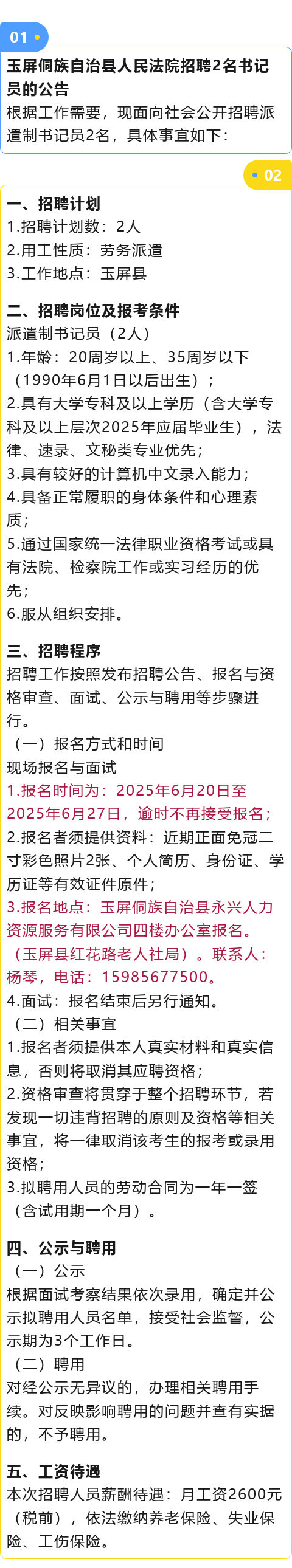 【政府机关】人民法院招聘2名书记员!大专起报!