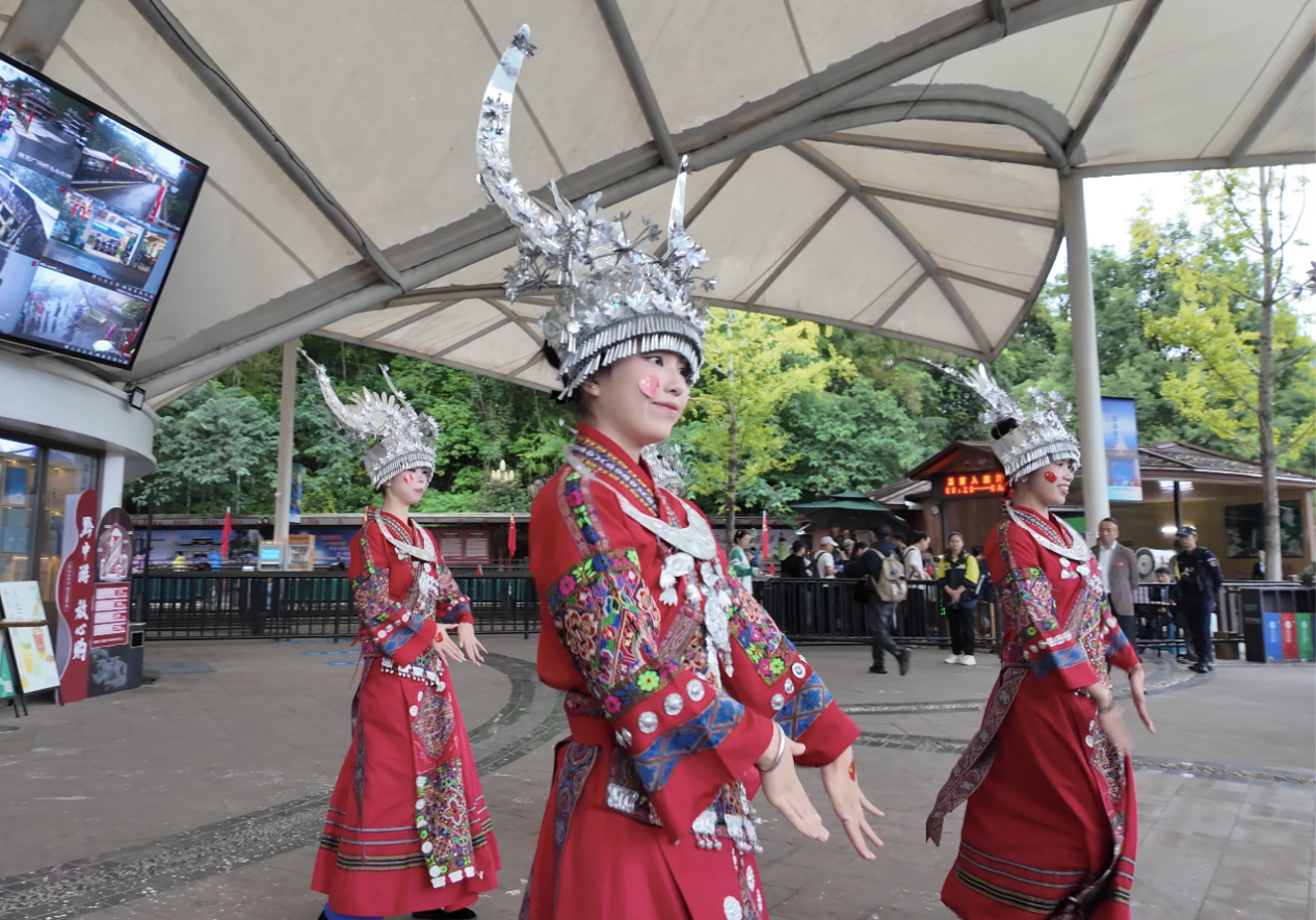 为营造喜庆祥和的节日气氛,景区提前策划,在主要游览线路上悬挂了数百面国旗,供游客抒发爱国情怀。同时,景区还举办了《傩戏》舞蹈、《舞动梵净山》+敬水舞蹈、《侗歌声声唱给党》舞蹈、《我和我的祖国》互动大合唱等非物质文化遗产展演活动,让游客在登山之余,能沉浸式体验当地独特的民俗风情,感受多彩贵州的文化魅力。