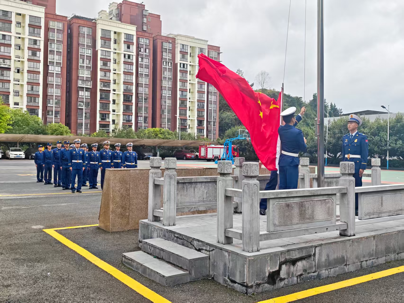 升旗仪式后,大队主官发表了简短而有力的讲话,强调全体人员要铭记光辉历史,继承和发扬优良传统,将爱国热情转化为履职尽责的强大动力。要时刻保持枕戈待旦的应急状态,以“火焰蓝”的担当,坚决守护节日期间辖区消防安全,为人民群众度过一个平安、祥和的国庆佳节提供坚实保障。