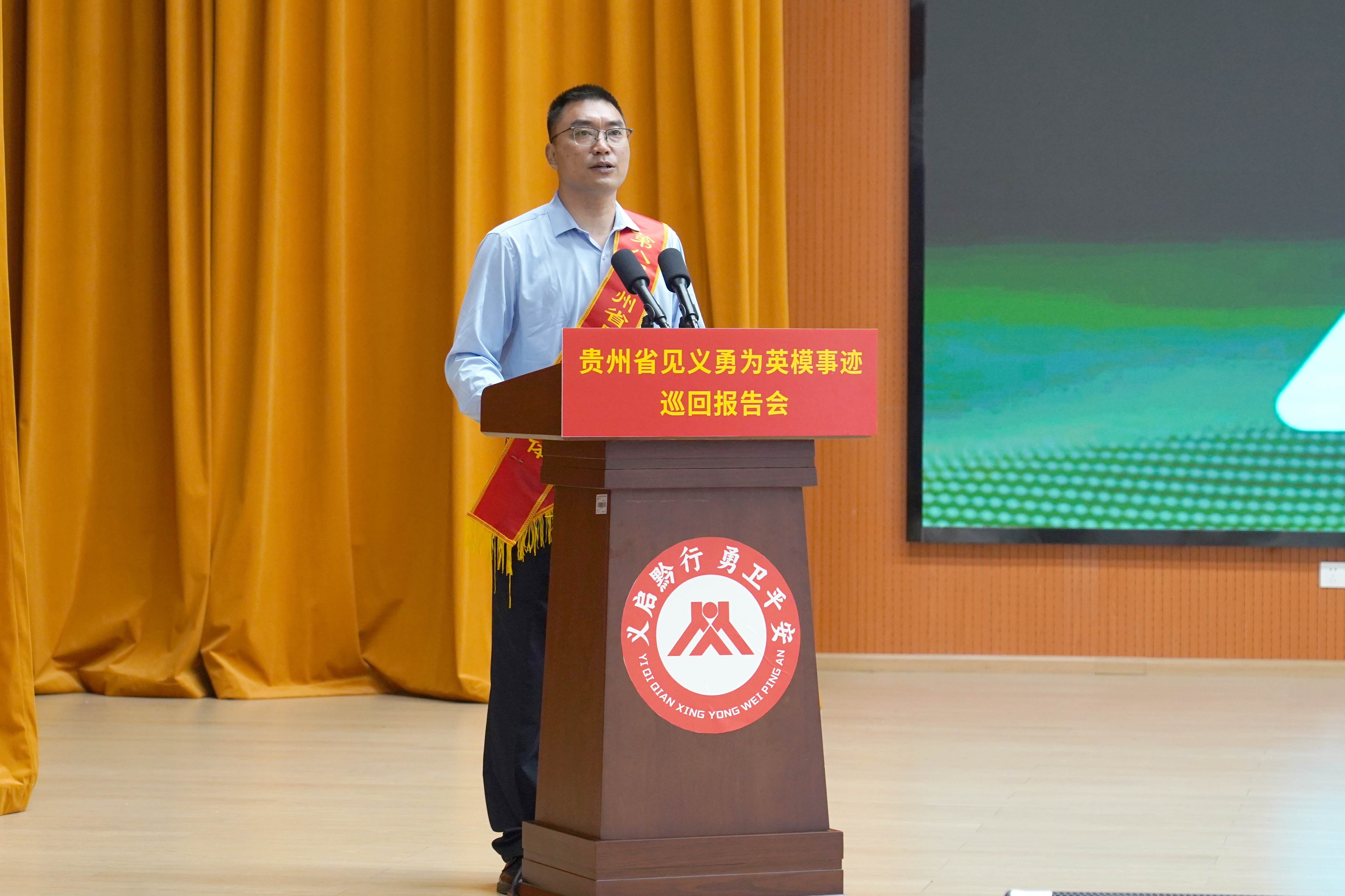 总队党委委员、政治部主任朱勇受总队首长委托,在讲话中代表总队党委和全体指战员向报告团全体成员表示了最热烈的欢迎,向见义勇为英模致以了最崇高的敬意,号召全体指战员以见义勇为英模为榜样,自觉将见义勇为的高尚品德融入赴汤蹈火的生动实践中,苦练专业精准、科学高效的过硬本领,发扬英勇顽强、不怕牺牲的战斗作风,保持枕戈待旦、快速反应的备战状态,不断培育战斗精神、砥砺血性胆气,积极投身“平安贵州、法治贵州”建设,奋力在中国式现代化贵州实践中展现新风采、作出新贡献!