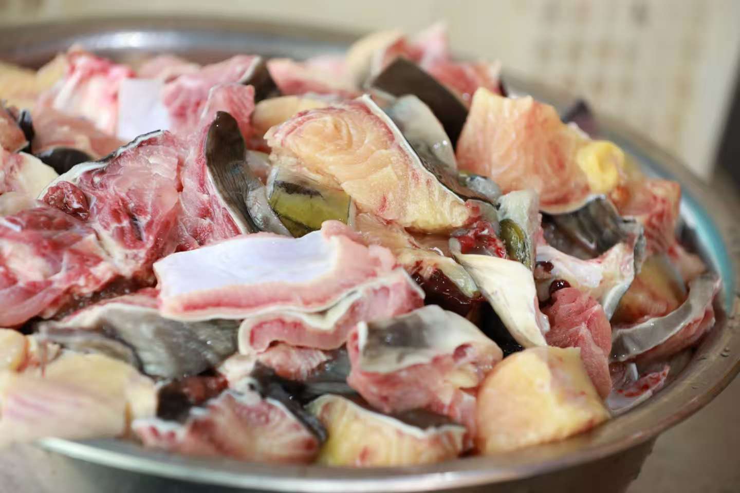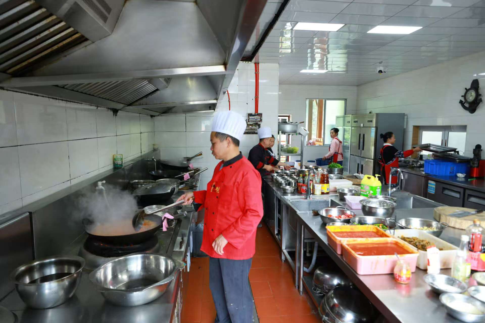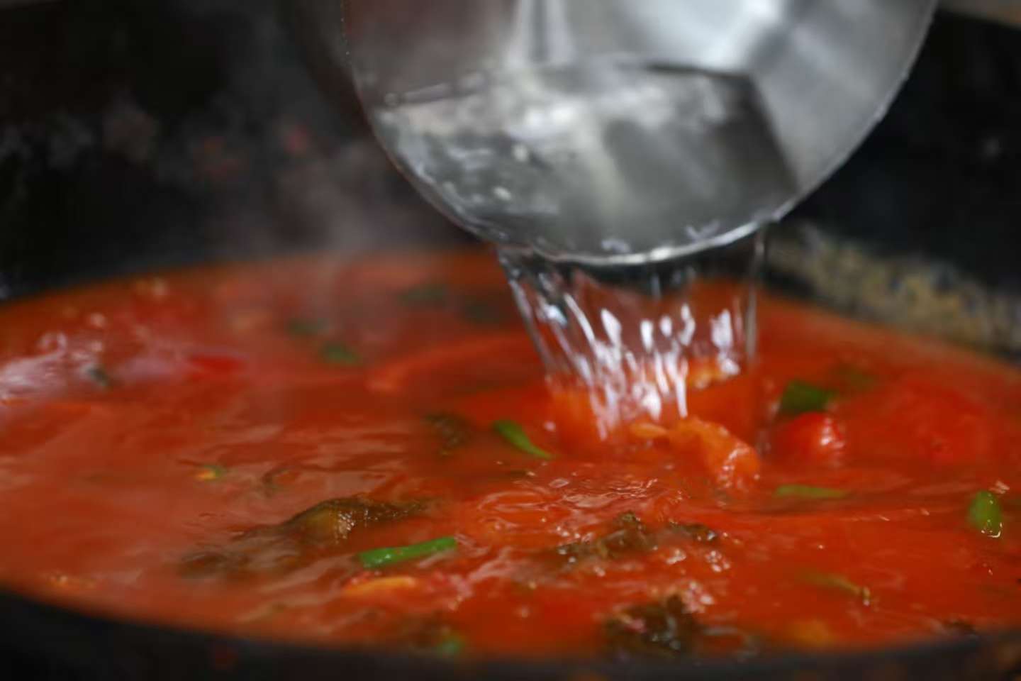 今年光酸辣椒和酸菜,他们就备下了一万多斤——这些底料都是“时令限定”,每年只在食材最新鲜的时节制作,从鲜辣椒剁碎的颗粒感,到西红柿碾磨的细腻度,再到青菜晾晒的干湿度,每个细节都关乎酸汤最终的品质。