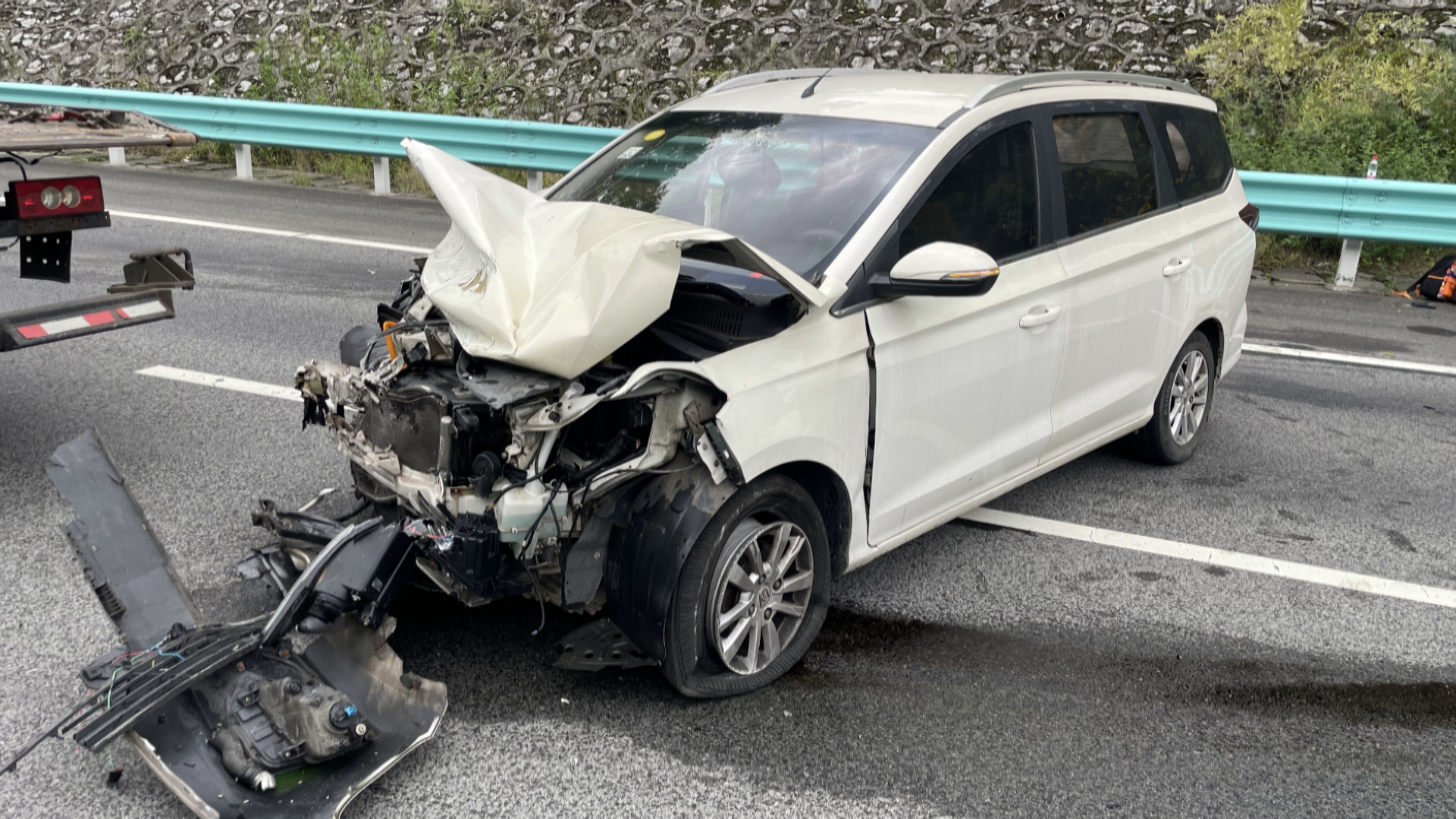 近日,在务遵高速公路发生一起单方面交通事故,一辆商务车因爆胎失控撞上了路边护栏,车上两名乘客受伤。