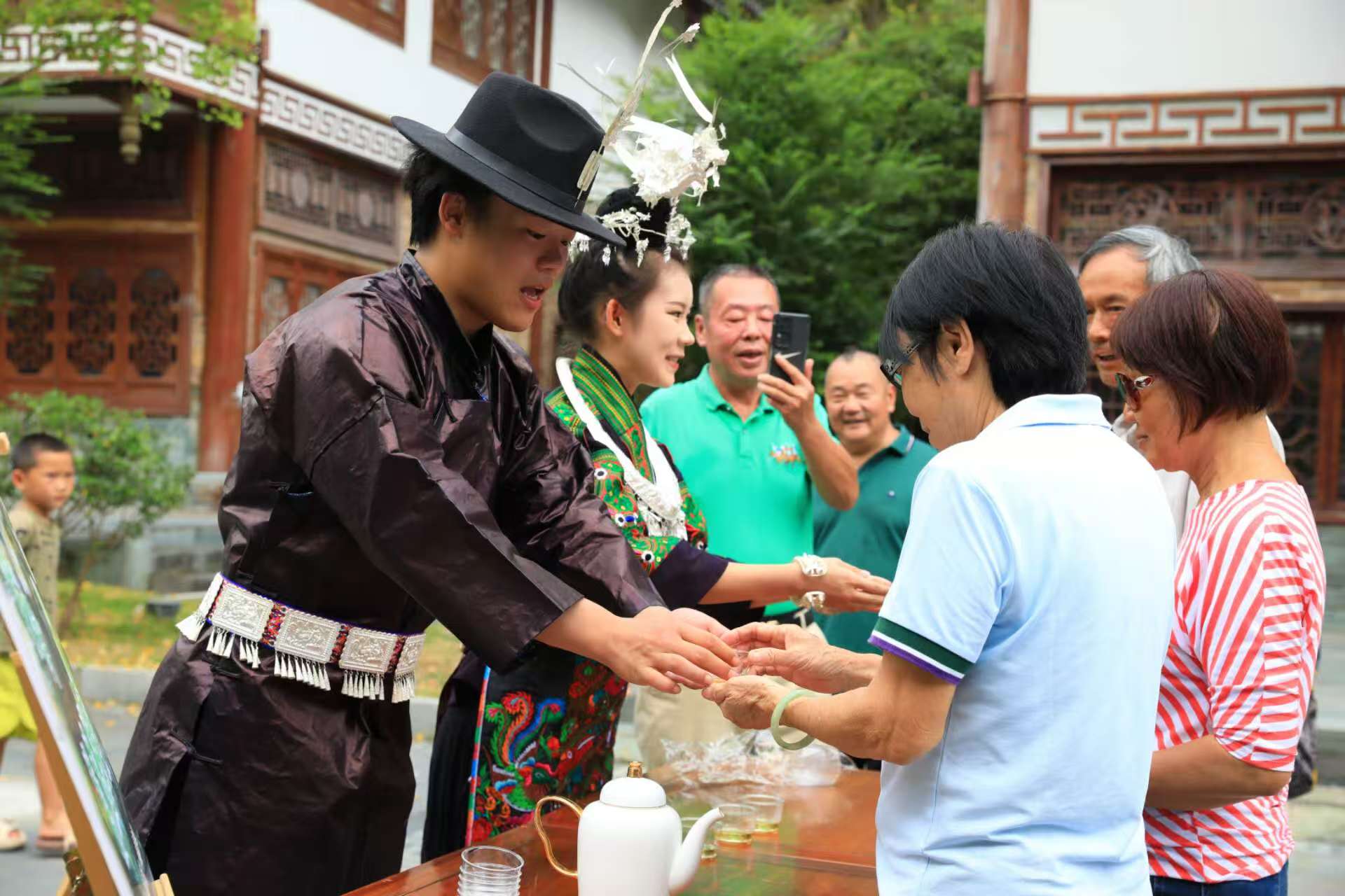 “我是第五次来剑河温泉,这样的迎宾方式很有特色,感觉太有仪式感了!刚到这里就感受到了满满的热情。”来自湖南的游客刘承彬一边接过热茶,一边迅速拿出手机记录这一美好瞬间,言语间满是兴奋,“这次特意和广东朋友相约,来剑河温泉过双节,就是想好好感受一下苗侗文化与温泉养生的独特魅力。”