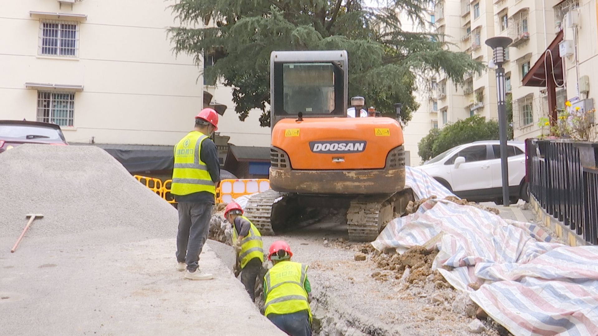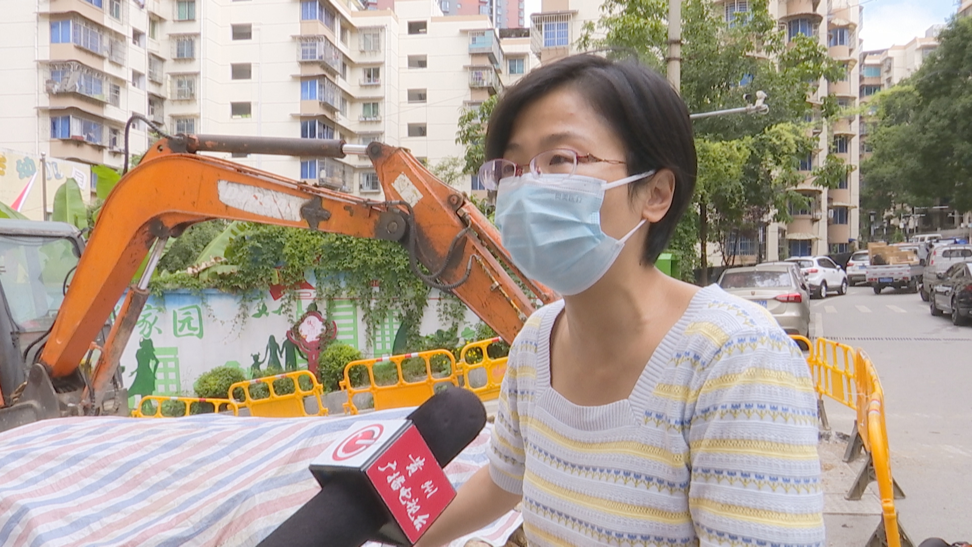 周女士:完全没有预先通知,你要是通知我了,我不走,那是我的问题。你没有通知我,我车被堵在里面了,我找谁去?问施工的工人,他们说可能还有三天的时间才修好。就今天,完全没有人了。三天搞不完的,按照他们的施工进度来说的话。那我整个国庆假期都完蛋了,我一天都出不去。而且还有一个问题是,这里如果施工马上不完成,现在好在是放假,开学以后我送小孩上学怎么办?