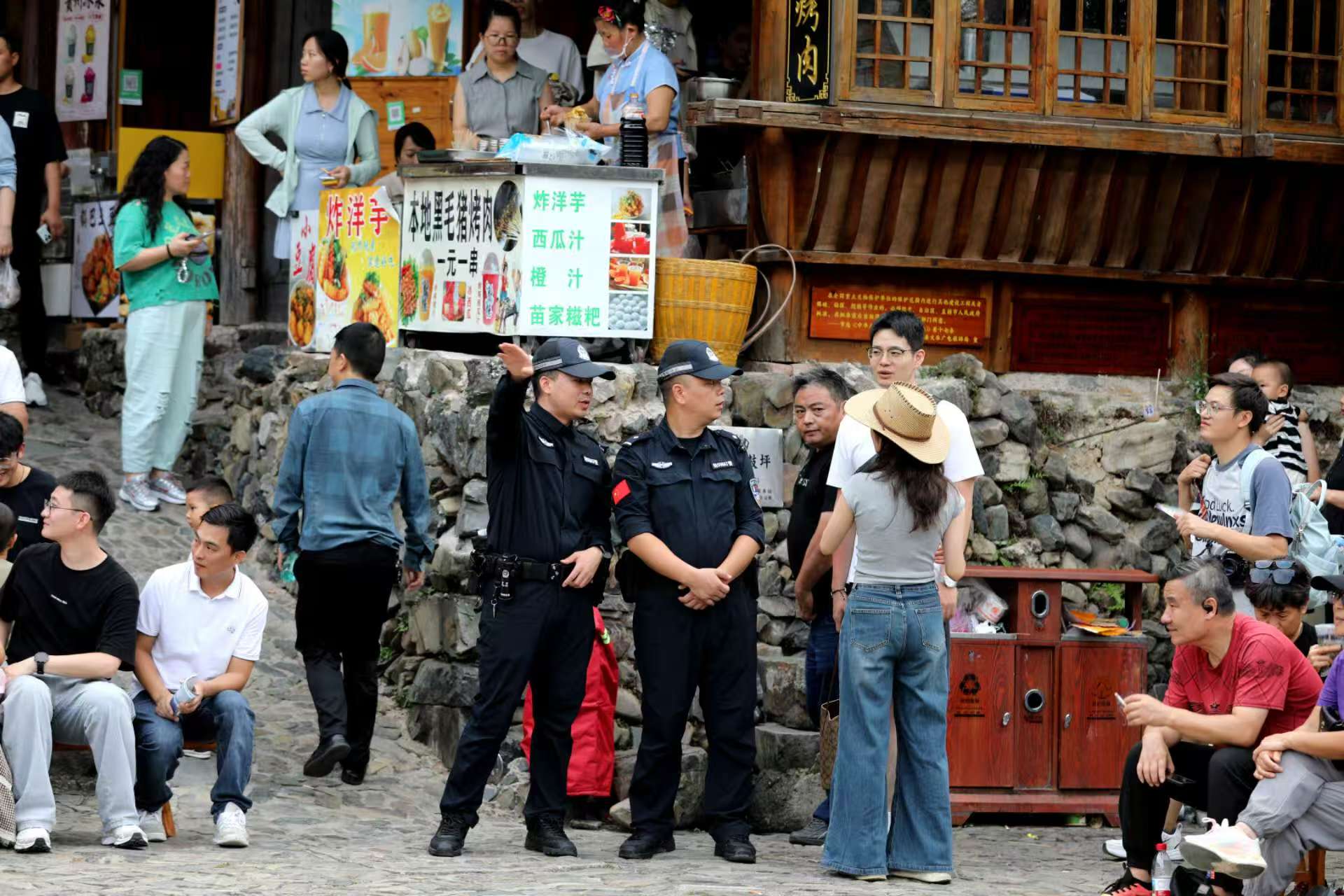 期间,他们还快速化解了两起小纠纷——两名游客因争抢拍照位置起争执,杨天佑上前耐心调解,既维护了秩序,也没扫了大家的游玩兴致。