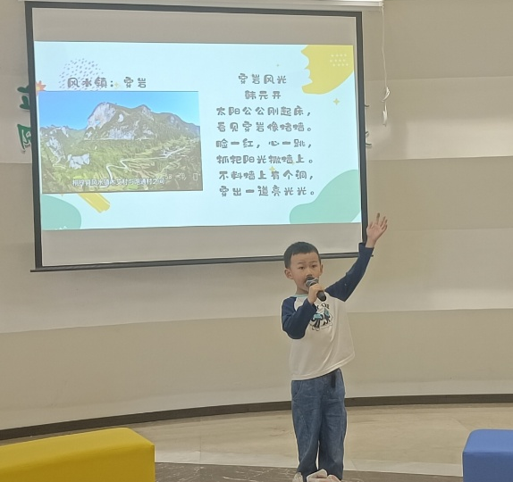 随后的“童谣表演”环节更显创意与深度。孩子们提前精心准备了PPT和短视频,结合桐梓的秀丽风光、历史文化和物产特色,进行声情并茂的表演。每位完成表演的参与者均可获得五个月饼的奖励,这不仅是对他们才艺的认可,也进一步激发了他们了解家乡、传承文化的热情。