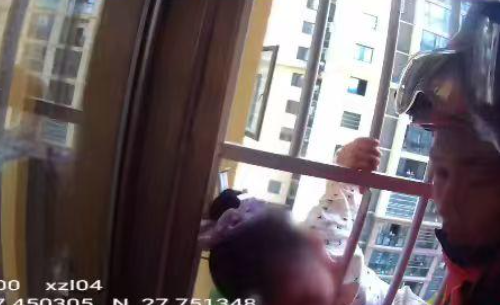 太惊险! 8 楼防盗窗外卡着个小孩 消防火速营救