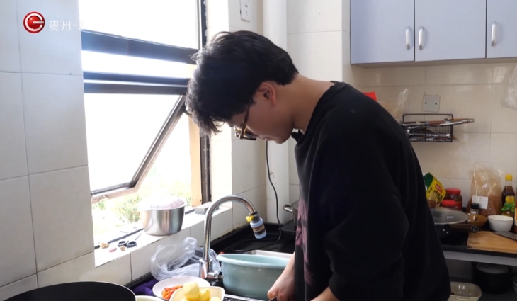 王培培从毕节黔西的田埂边走来,带着一身从小在灶台前练出的手艺,在人才公寓里一边守着热乎饭菜,一边追着考研的梦。他的锅铲和笔,都是他逐梦的工具。
