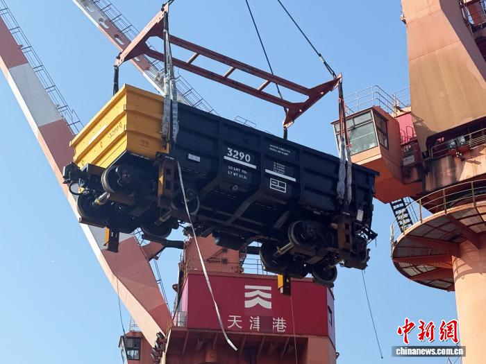 13日,由中车齐车公司研制的30吨轴重矿石车在天津港装船,即将发往非洲,这是该公司首次向非洲出口矿石车,在拓展海外市场方面迈出重要步伐。