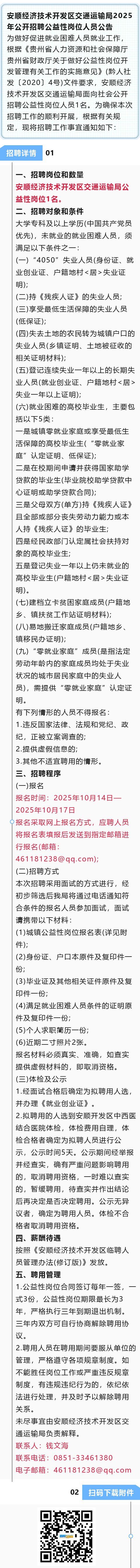 【政府机关】安顺经济技术开发区交通运输局招聘!大专起报!