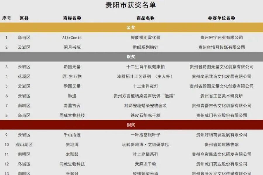 近日,2025 中国特色旅游商品大赛在青海西宁落幕,贵州省参赛作品表现卓越,共斩获 7 项金奖、10 项银奖、16 项铜奖,获奖总数位居全国前列。其中,贵阳市共获得 2 金 6 银 5 铜," 贵阳特色 " 旅游商品的竞争力得到充分展现。