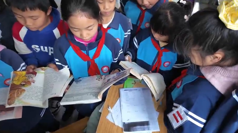 小小的图书角里,歪歪倒倒的放着一些旧书,大多是故事类的书籍,纸页泛黄、边角卷曲,看起来被翻阅了很多遍,但大家依然读得津津有味。