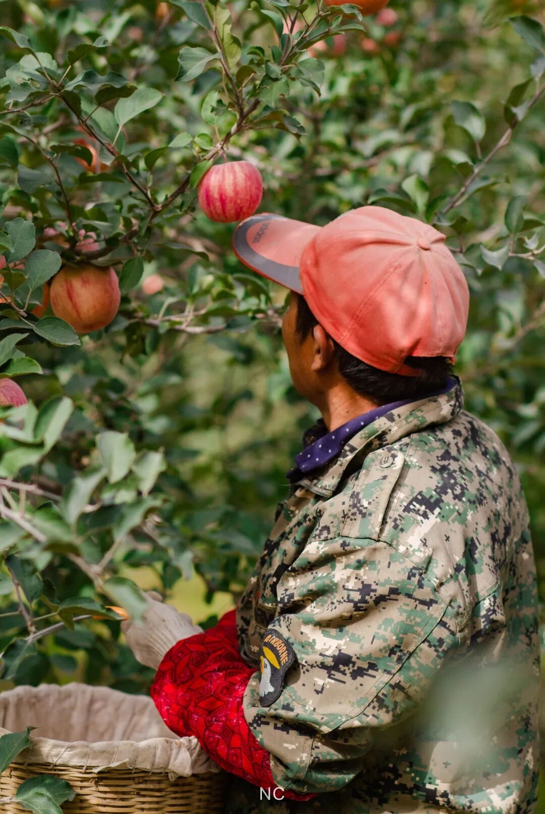早上气温低,摘的苹果能最大程度保持新鲜和甜度,果农们就一大早5点钟上山摘果。道路狭窄,就肩挑人扛,人肉来回运输水果非常辛苦。