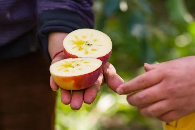 很多苹果园为了省人力物力,采用统一采摘,不论大小生熟,早早开卖,口感压根不达标。