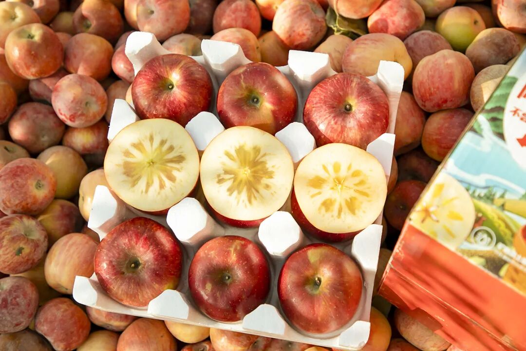 今年的阿克苏苹果已经3次霜降,脆度和甜度都杠杠的!冰糖心更是晶莹剔透,美得痴醉。