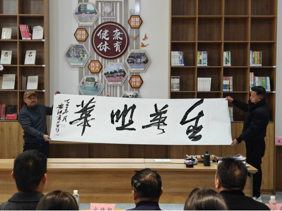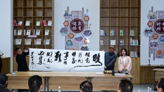 书协两位艺术家在现场挥毫泼墨,搭配米志平的古筝协奏,呈现“笔墨书香+雅乐清音”的视听盛宴,尽显中华传统文化魅力。活动最后的合影留念,为这场书香之约画上了圆满句号。