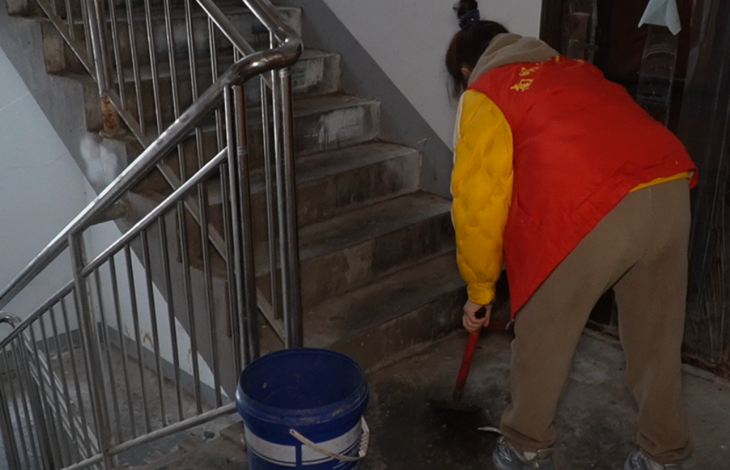 陈庄坝社区居委会副主任 陈霓:我们小区是一个比较老的小区,自从成立以来,就没有物业公司,小区的路面有环卫工作人员在打扫,但是楼道因为没有物业,我们也没有专项资金来清理,特别是猫狗的粪便,我们只能是加大宣传,自己看到了也会清扫掉。