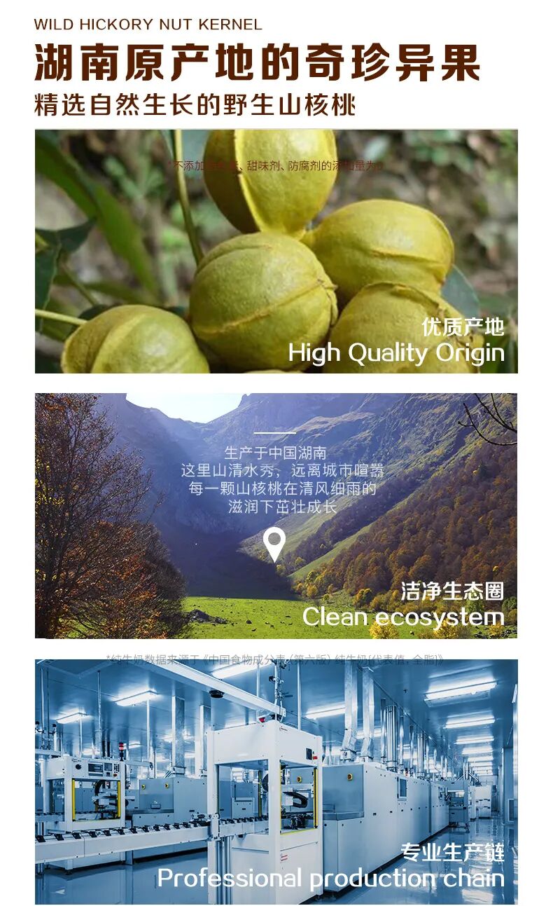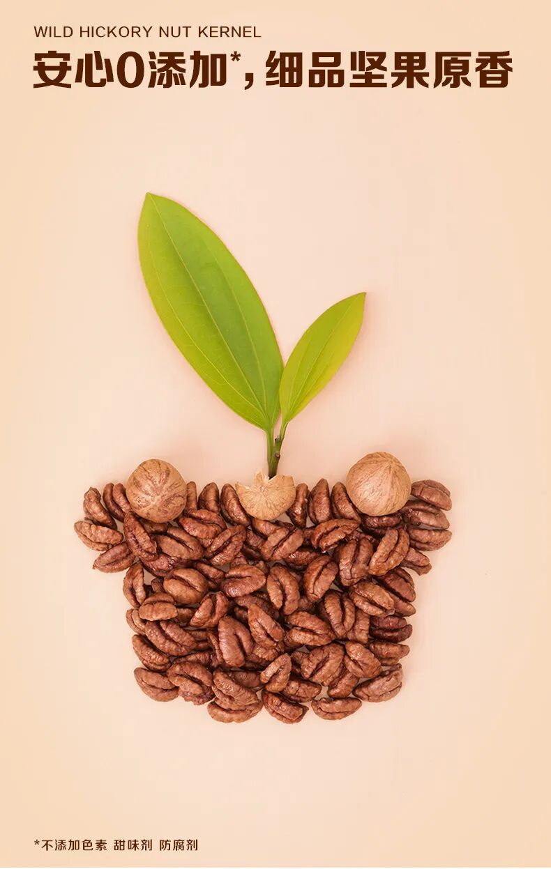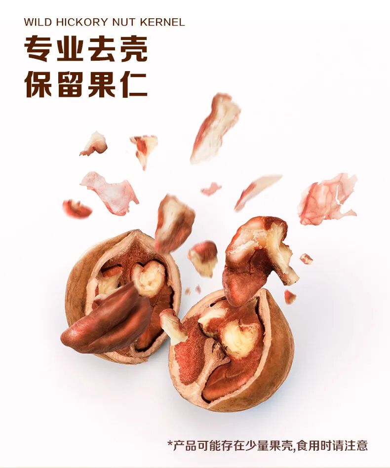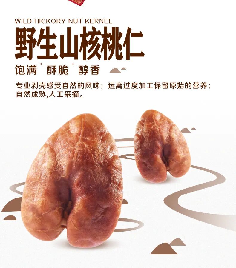 严选自然生长的野生山核桃仁,颗粒完整厚实,自带淡淡木本香气。低温轻焙工艺,保留原始酥脆口感与自然油脂香,不油腻不涩口,越嚼越回甘。