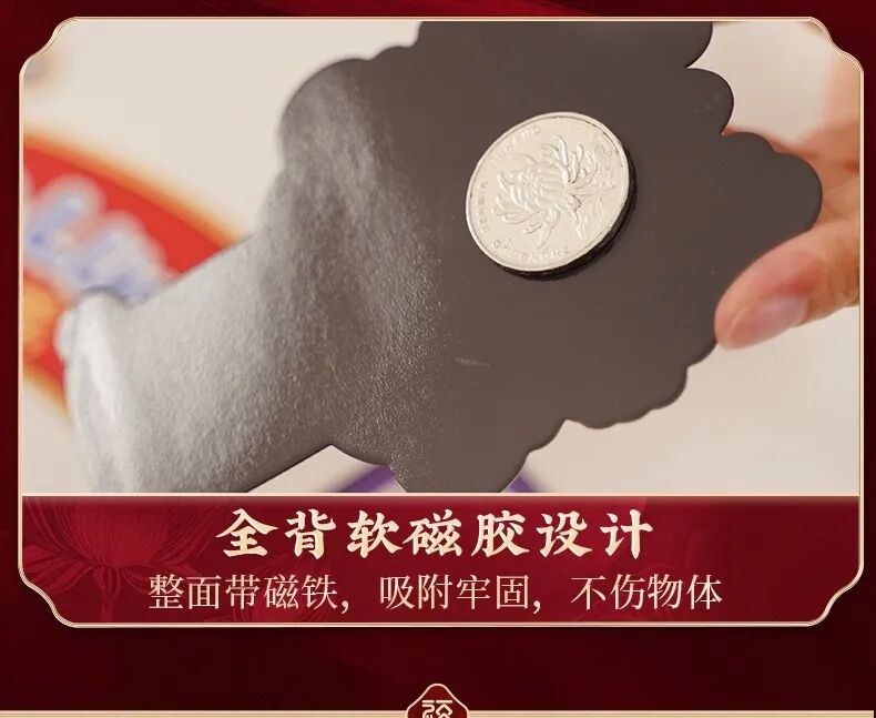 全背软磁胶设计,整面都带有强磁力,往铁制品上一贴就牢牢吸附,就算开关冰箱门、挪动位置,也不会轻易脱落。而且磁力温和,完全不伤害物体表面,不管是冰箱门、铁制橱柜,还是防盗门、办公室的铁文件柜,贴上去再撕下来,都不会留下划痕或胶印,洁癖党、强迫症都能放心冲!