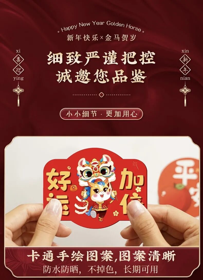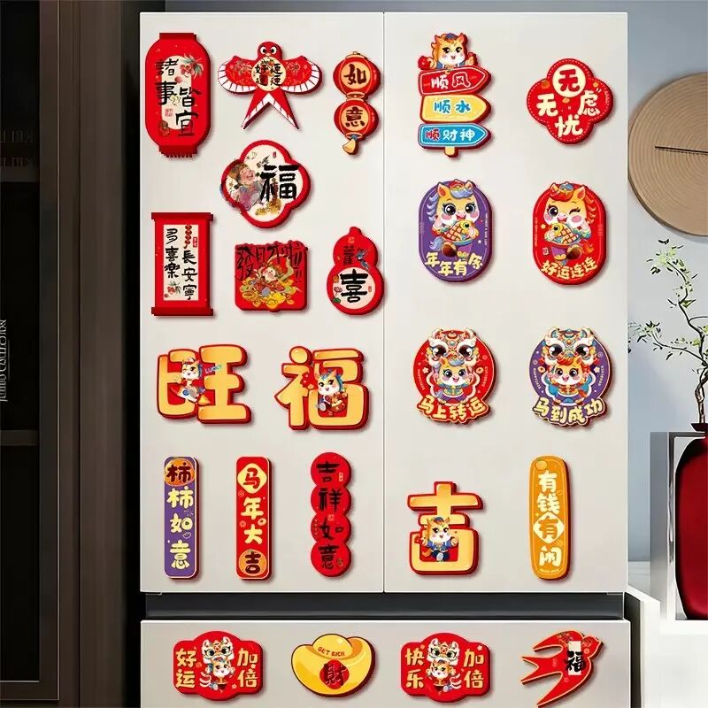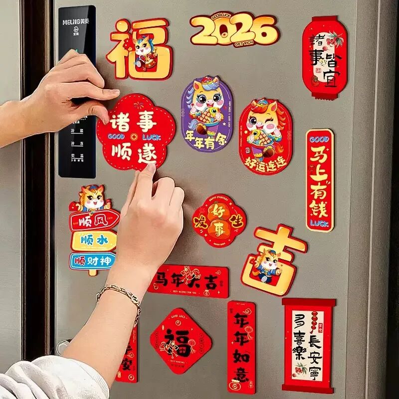 新年装饰不用大费周章,这款24件套卡通冰箱贴,颜值、实用性、性价比三重在线!红彤彤的喜庆配色契合春节氛围,萌趣手绘图案满足朋友圈分享欲,加厚软磁胶材质耐用不伤物,防水防晒设计可长期使用。