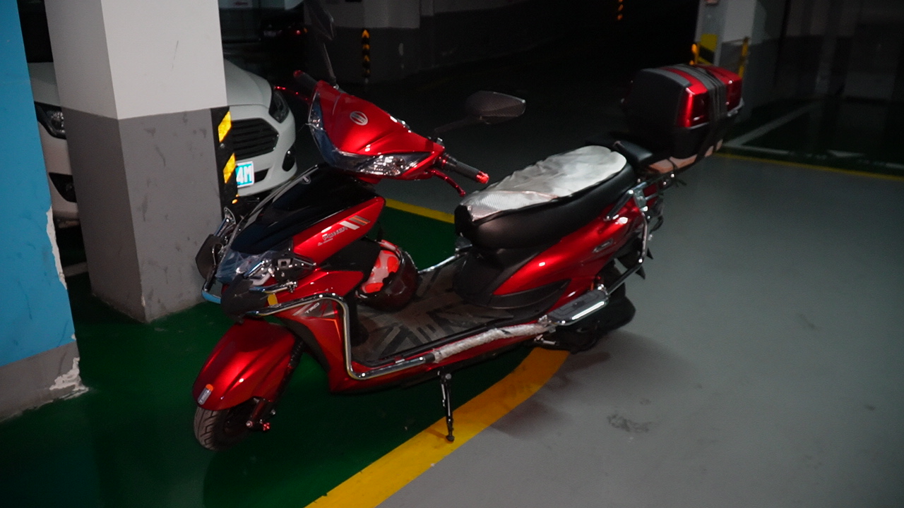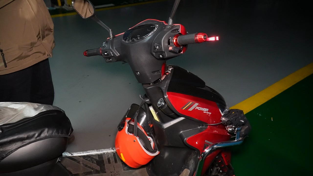 在贵阳市花果园L区地下停车场,记者看到了刘师傅购买的这辆电瓶车。虽然在车身上没有看到中文标识,但是据刘师傅介绍,这辆车的品牌叫作“大黄蜂”,是他在短视频平台上购买的。
