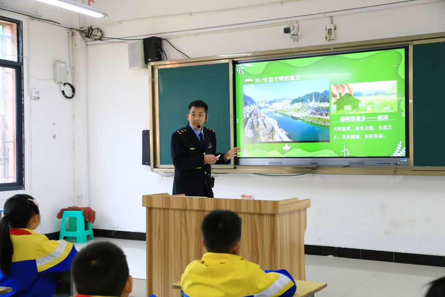活动中,工作人员充分结合小学生的认知特点,精心准备了PPT演示、趣味视频、互动问答等多种形式,用通俗易懂的语言和贴近生活的案例,从剑河县的生态资源现状、常见的环境问题、垃圾分类的重要性以及如何践行绿色生活等方面进行了详细讲解。
