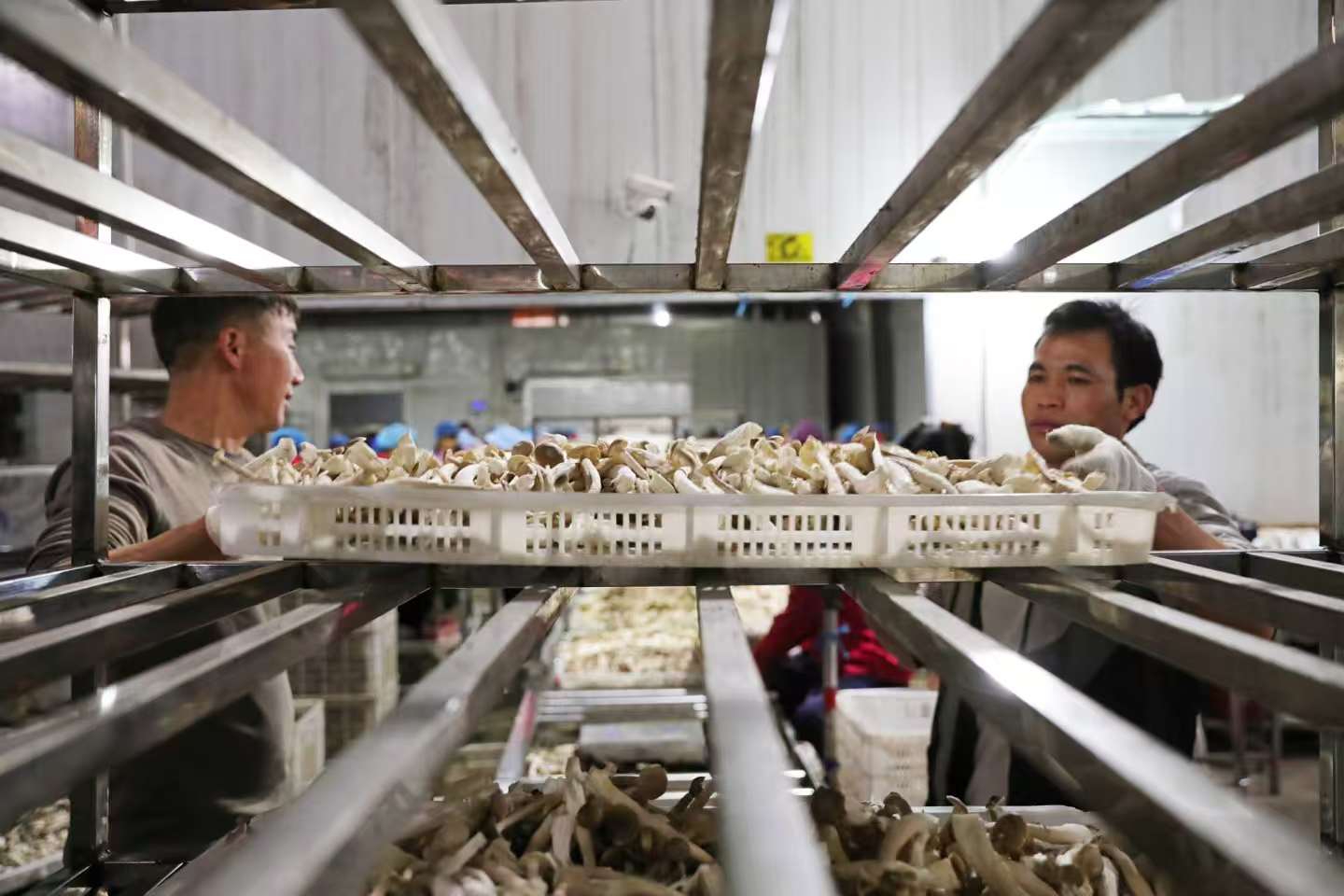 眼下正是鹿茸菇采收的旺季,走进贵州顺诚生物科技有限公司,机械的轰鸣声阵阵传来,工人们忙于制袋、采收、分拣、装卸、搬运。从制袋车间到包装车间,随处都是繁忙的景象。