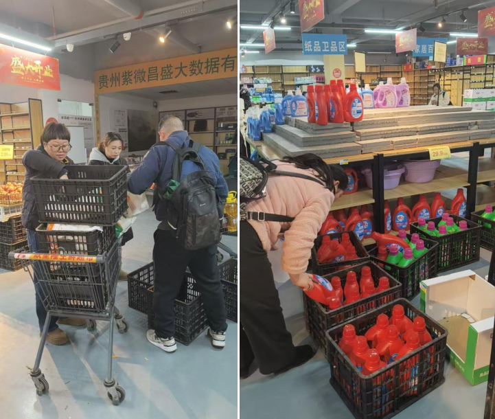 周大姐在贵阳市观山湖区一家生鲜超市工作,1月6号早上她按上班时间前往超市,没想到超市不仅大门紧锁,门口还聚集了二三十号人讨要货款,她了解后才知道,超市可能要“倒闭”了。