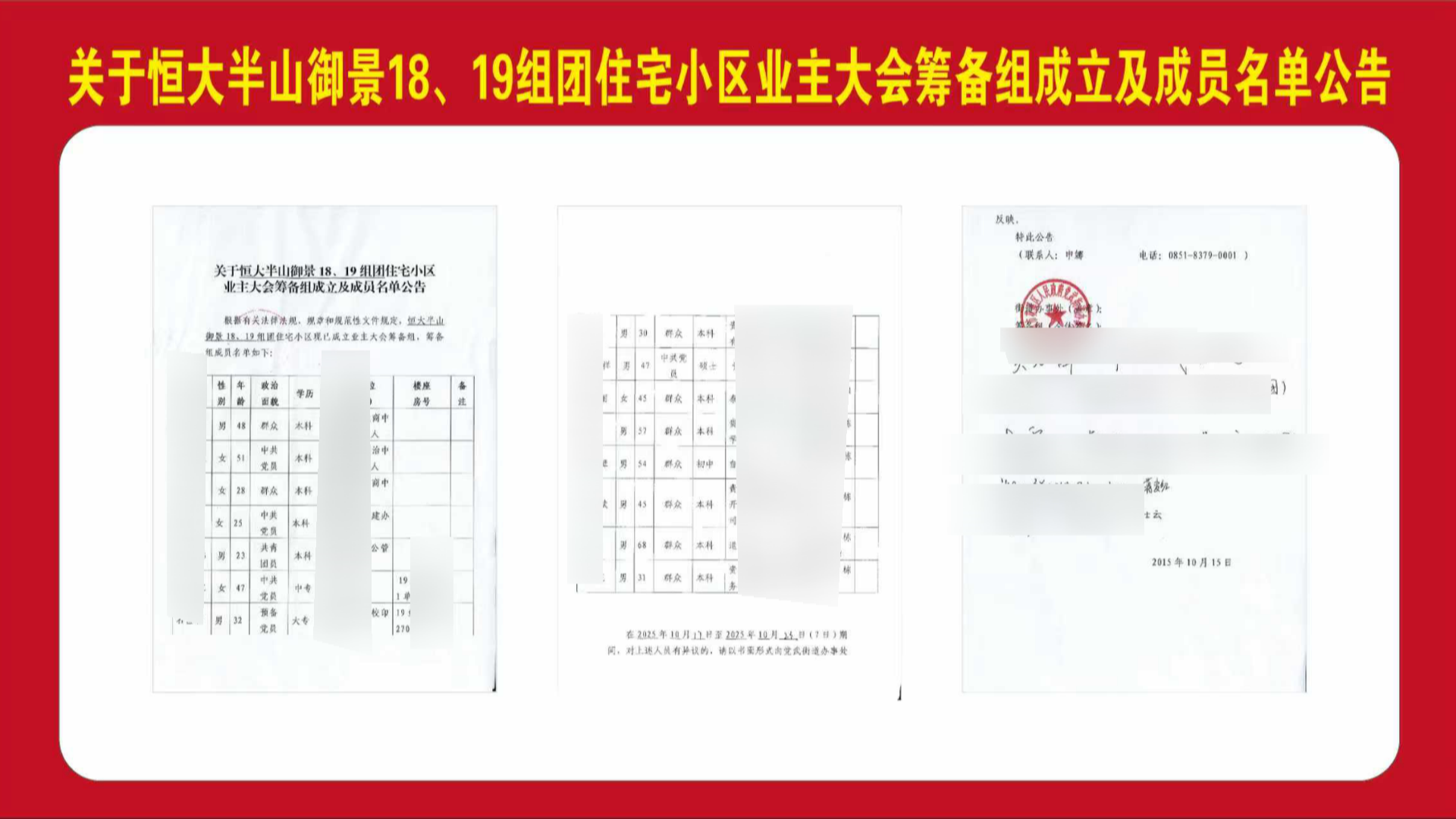 成立业主委员会,本意在于规范小区管理、维护业主权益,其过程理应公开透明、广纳民意。近日,贵安新区恒大半山御景小区有业主向反映,该小区的18、19组团正在推进的业委会筹备工作,但有业主对程序提出质疑,竟受到“人肉搜索”的威胁。这究竟是怎么一回事呢?