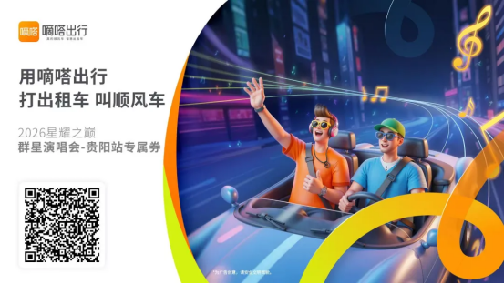 2026星耀之巅群星演唱会·贵阳站&嘀嗒出行专属优惠券来了,扫描二维码即可免费领取,2026年1月9日00:00:00至1月10日23:59:59乘车立享超值优惠。