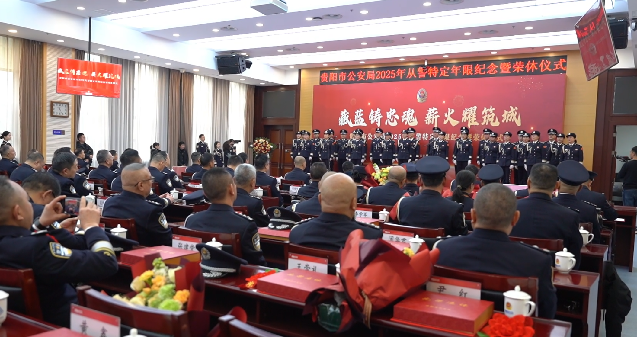 早上10点半,贵阳市公安局举行了2025年从警特定年限纪念暨荣休仪式,让荣休民警和新警代表进行传承接力。