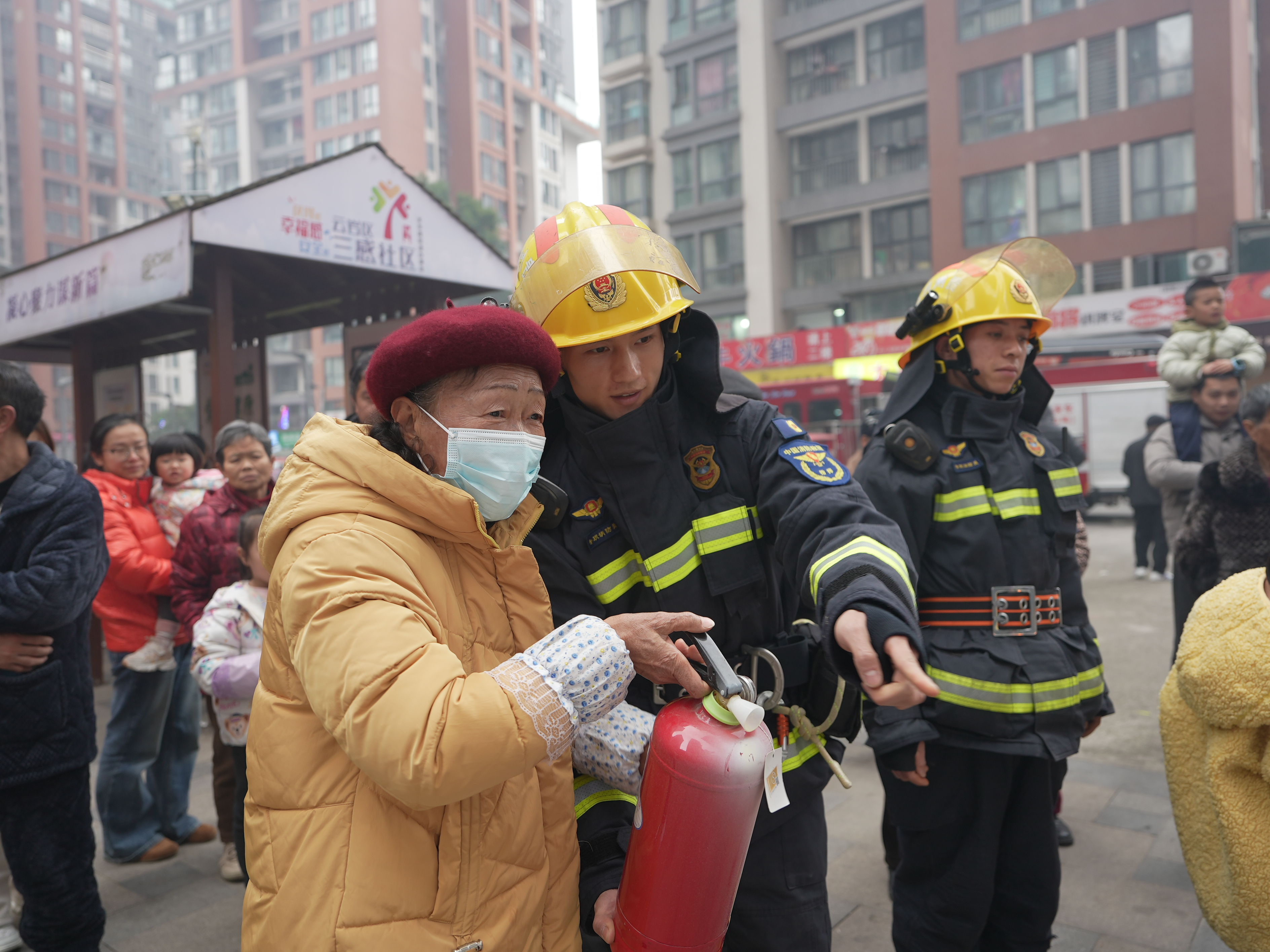 1月16日,贵阳市消防救援支队云岩大队联合所属街道、物业服务中心,在甜蜜小镇小区内组织开展了一场形式多样、内容丰富的“高层建筑消防安全”主题宣传活动。活动通过知识讲解、器材体验、模拟演练等多维互动方式,为社区居民带来一堂生动的“消防安全必修课”。活动现场设置了多个体验与学习区域。在消防器材体验区,消防救援人员向居民们详细讲解了干粉灭火器的正确使用方法和日常检查要点。“一提、二拔、三握、四压……”在专业人员的指导下,居民们纷纷上前,亲身体验了如何用灭火器扑灭初期火源。在消火栓出水体验点,居民们在队员的帮助下,学习连接水带、开启阀门等操作流程,对这座“熟悉又陌生”的建筑消防设施有了更直观的认识。
