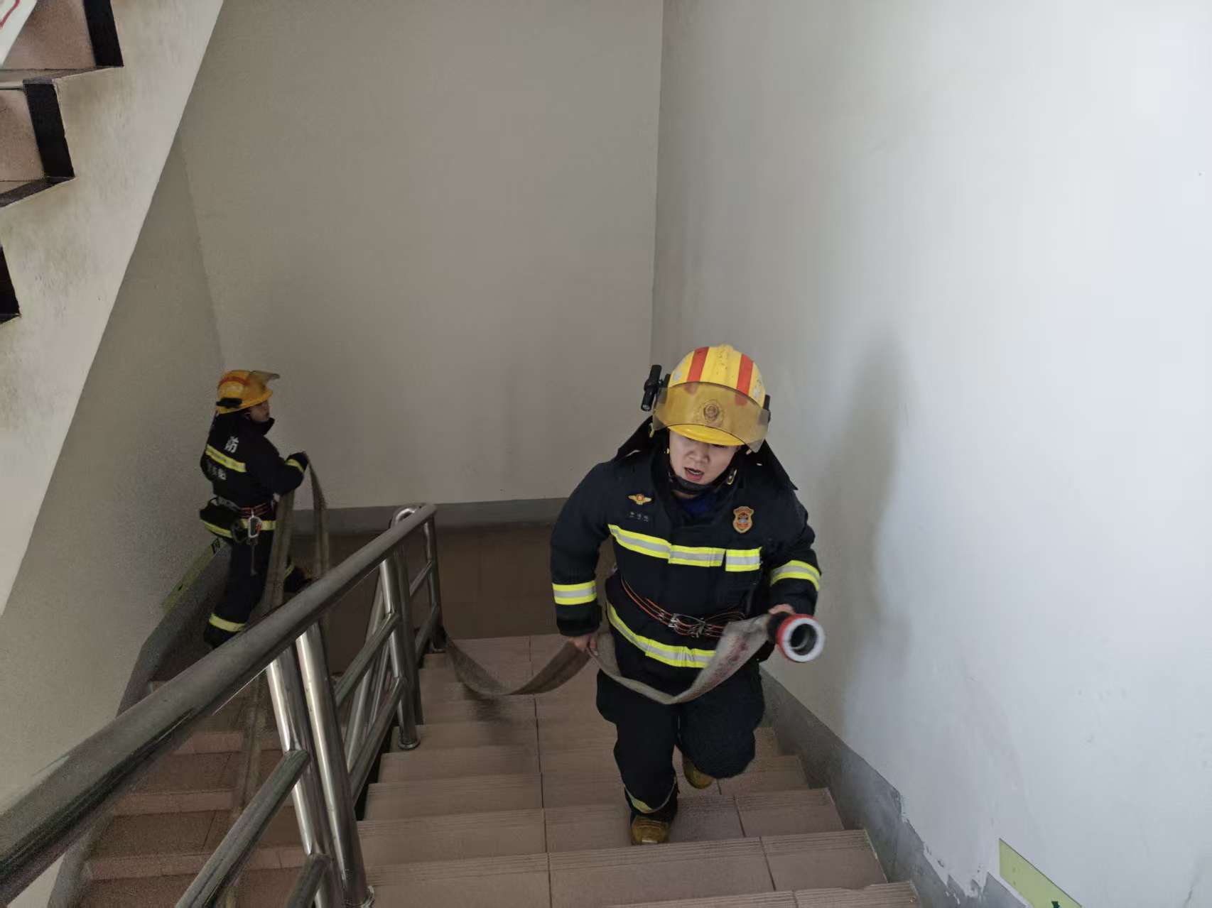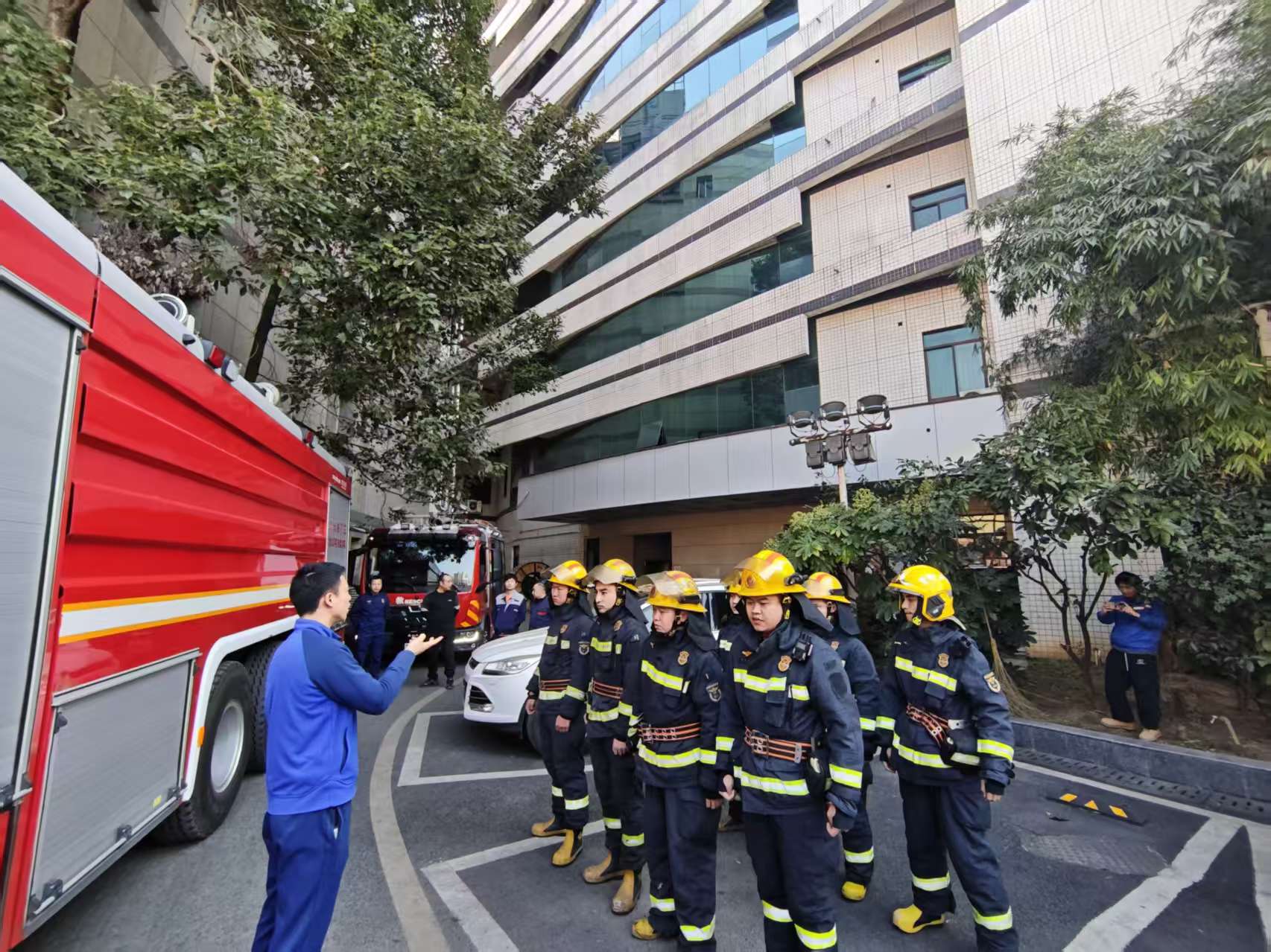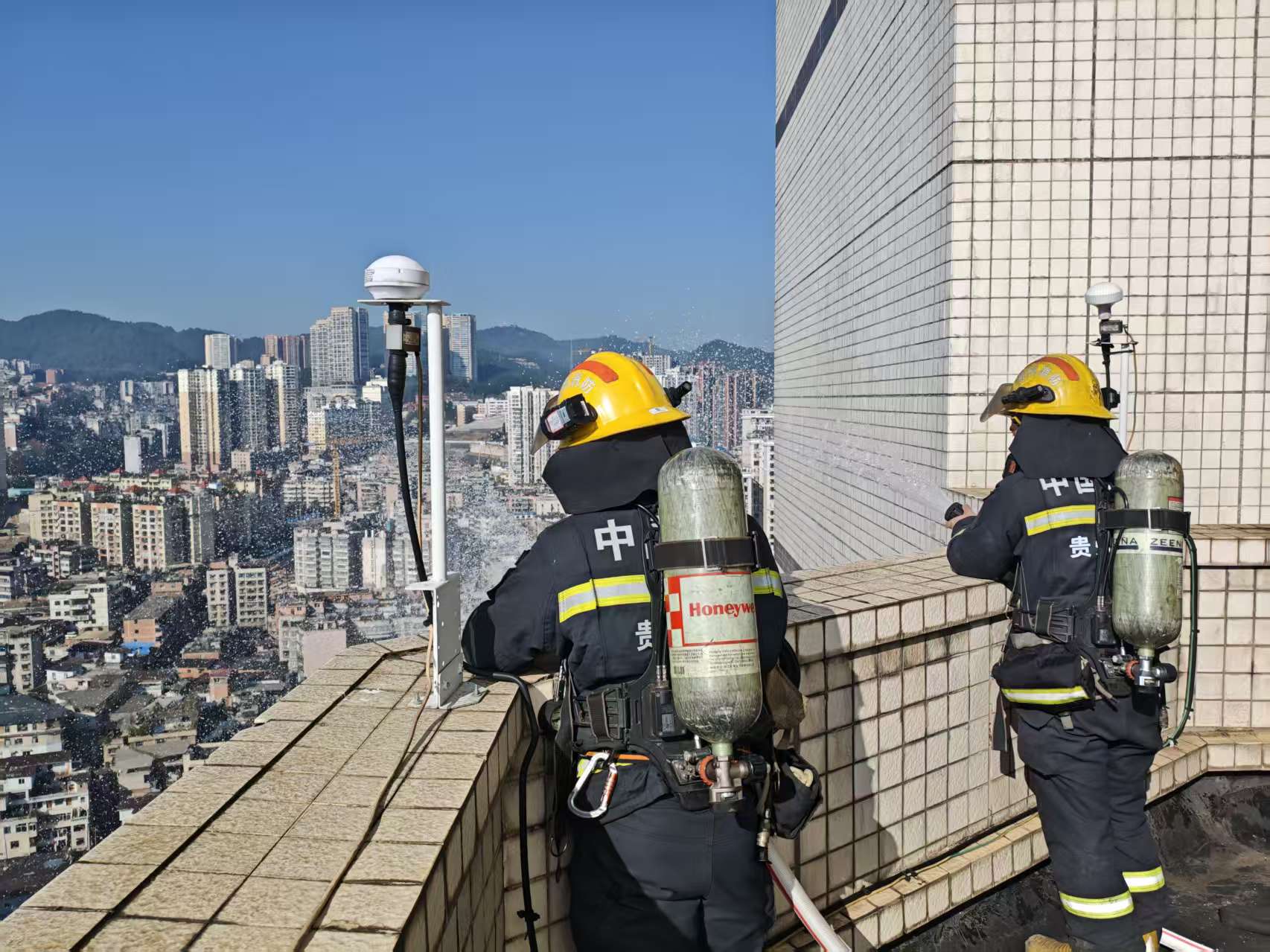 近日,贵阳市消防救援支队云岩大队贵开路消防救援站联合中国电信贵阳分公司,在电信分公司高层建筑内开展全要素、实战化消防演练,以练促战筑牢城市安全屏障。