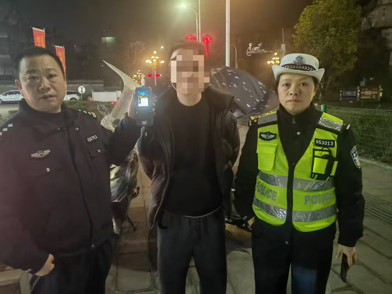 近日,织金县交警大队在城区开展交通违法专项夜查。一名男子驾驶摩托车行驶至卡点,民警刚示意其靠边接受检查,这名男子就主动招了。