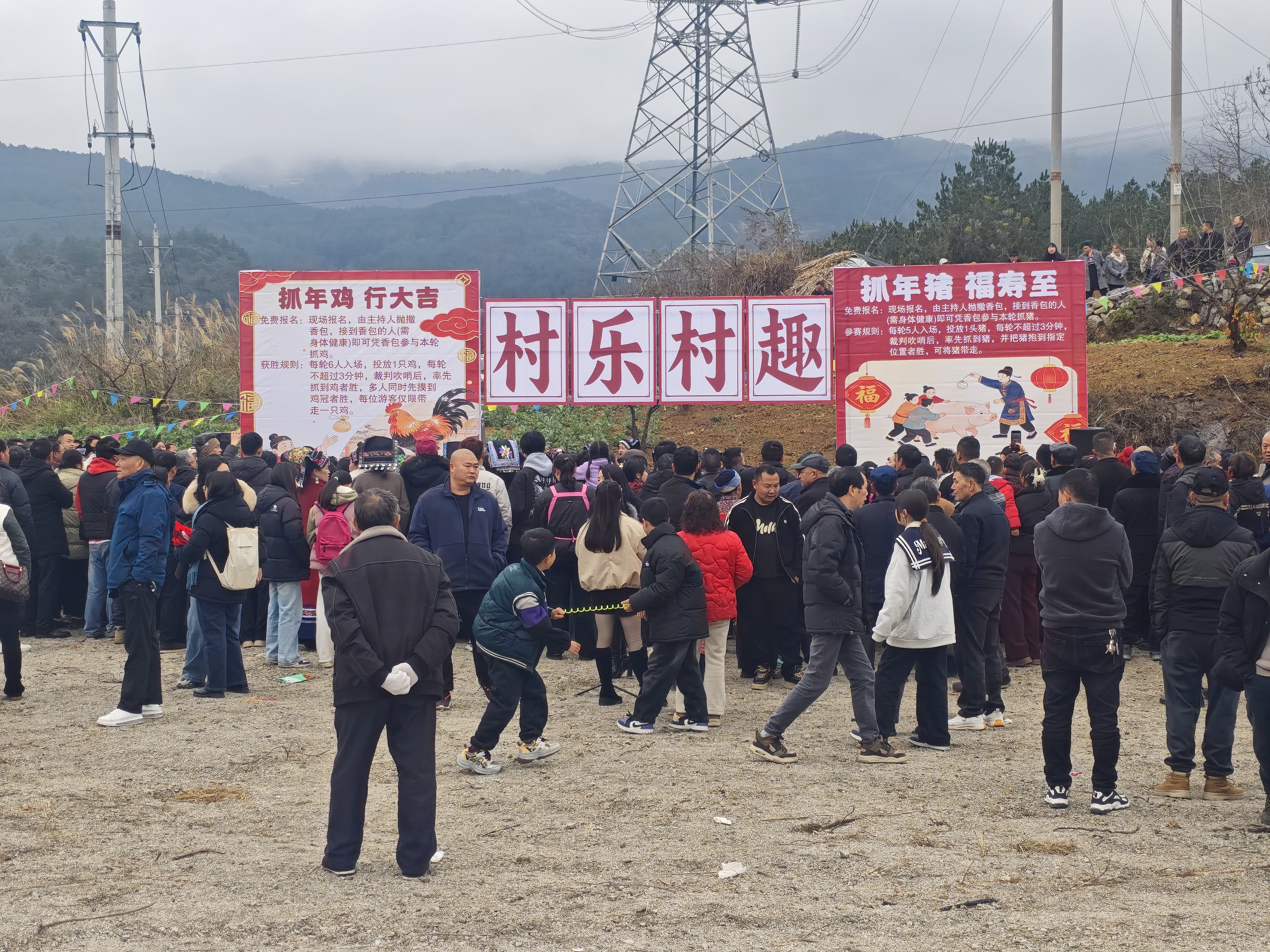 本次活动设置多元特色板块,兼顾趣味性与文化性。抓年鸡、抓年猪等项目点燃现场热情,参赛群众奋勇争先;文化体验环节里,村民文明积分故事分享传递文明新风,写春联、拓印、醒狮DIY等传统项目让群众沉浸式感受传统文化魅力,省级非遗《花棍舞》的精彩亮相更成为活动亮点。现场活动大舞台氛围热烈,村民自编自演的节目轮番登台,充分展现出乡村群众团结协作、积极向上,新农村′精神面貌。