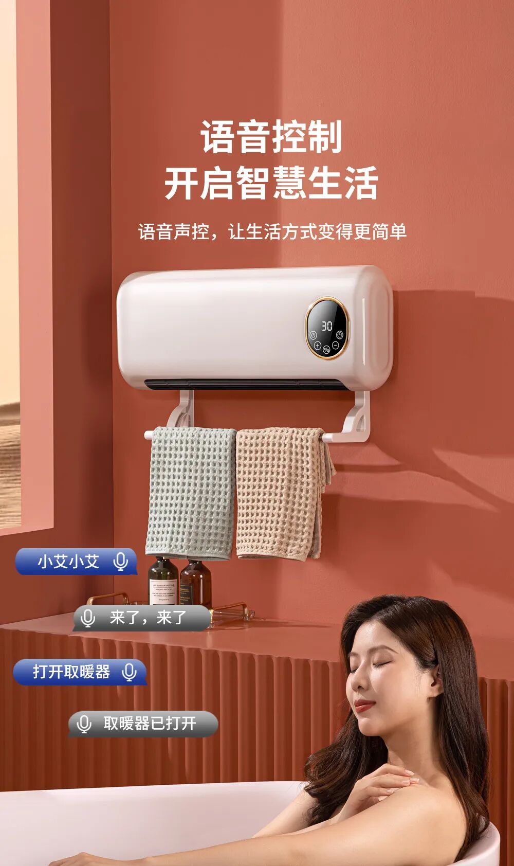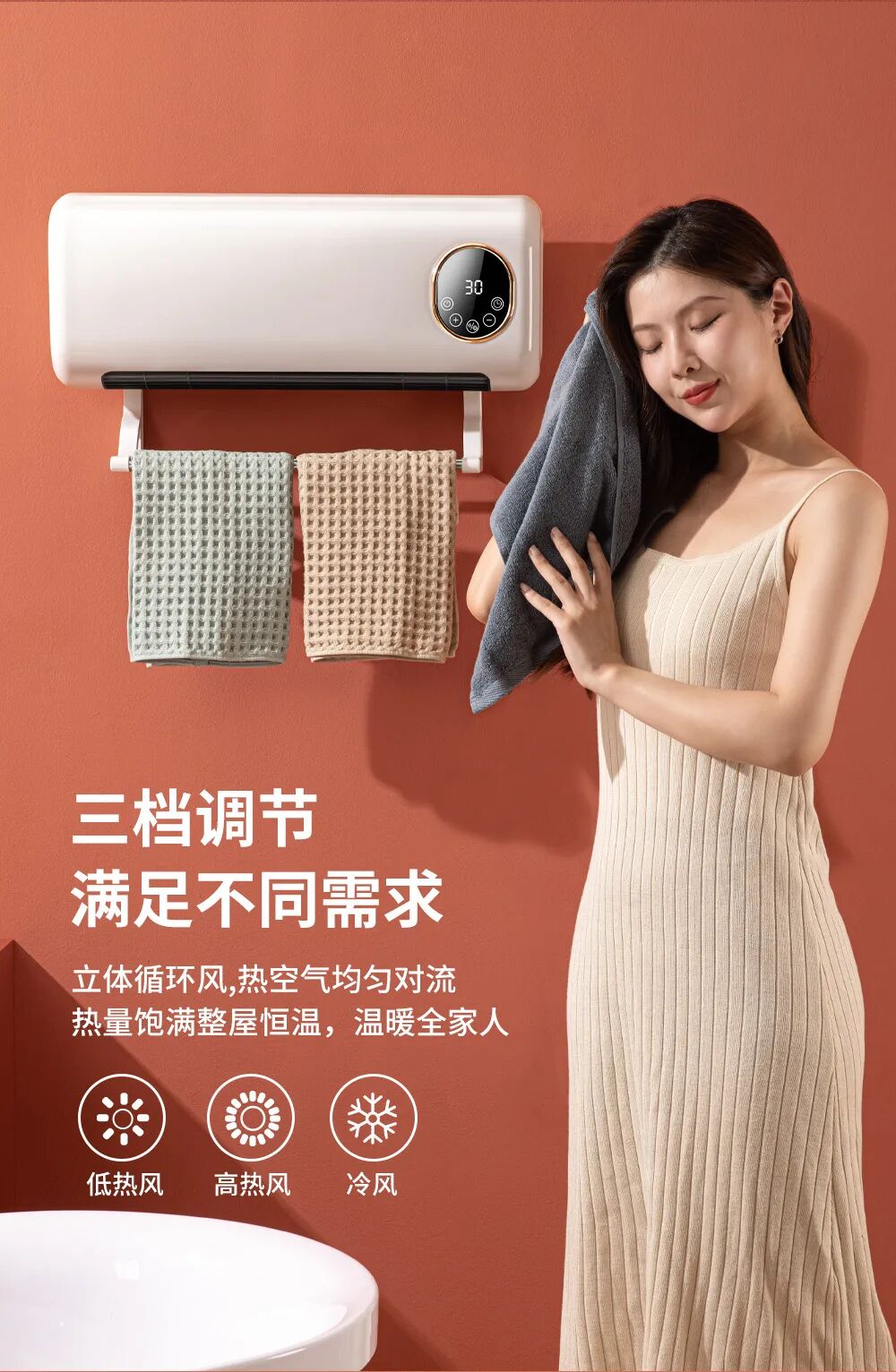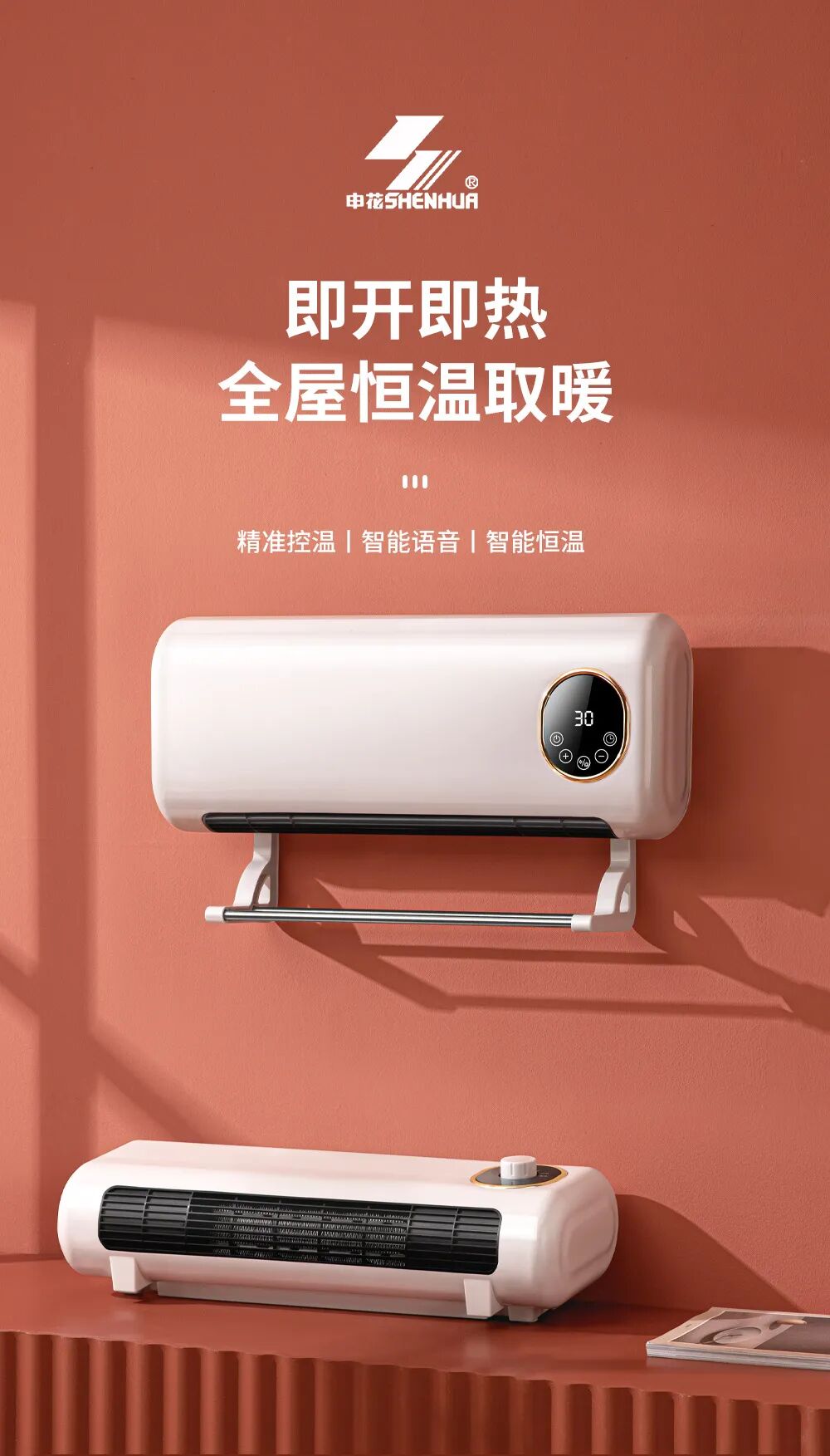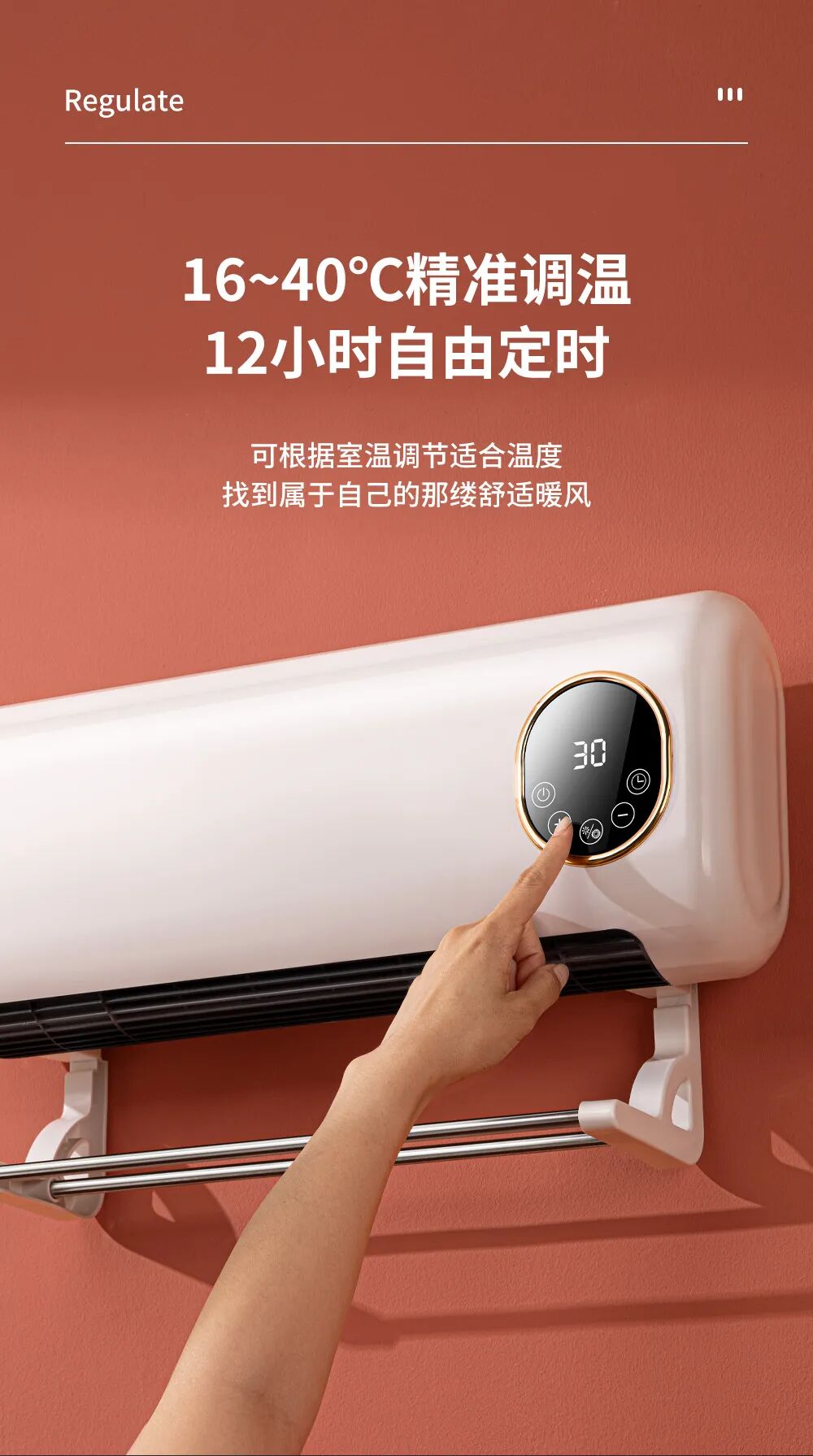 安装灵活不毁墙!支持打孔安装或挂钩使用,两种方式都能稳稳固定。可壁挂可台立的双重设计,完美适配浴室、卧室、办公室、宿舍等多种场景,哪里需要暖哪里。