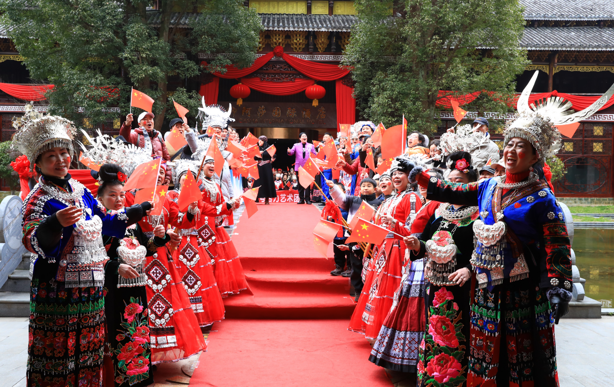 活动开始,一场激情澎湃的红歌快闪瞬间点燃全场氛围。来自各地的参与者手持小红旗,在仰阿莎温泉国际酒店外场整齐列队,《歌唱祖国》等经典曲目轮番唱响。悠扬旋律中,不少游客自发加入合唱队伍,用歌声传递对美好生活的向往,为这场文化盛宴奠定温暖基调。