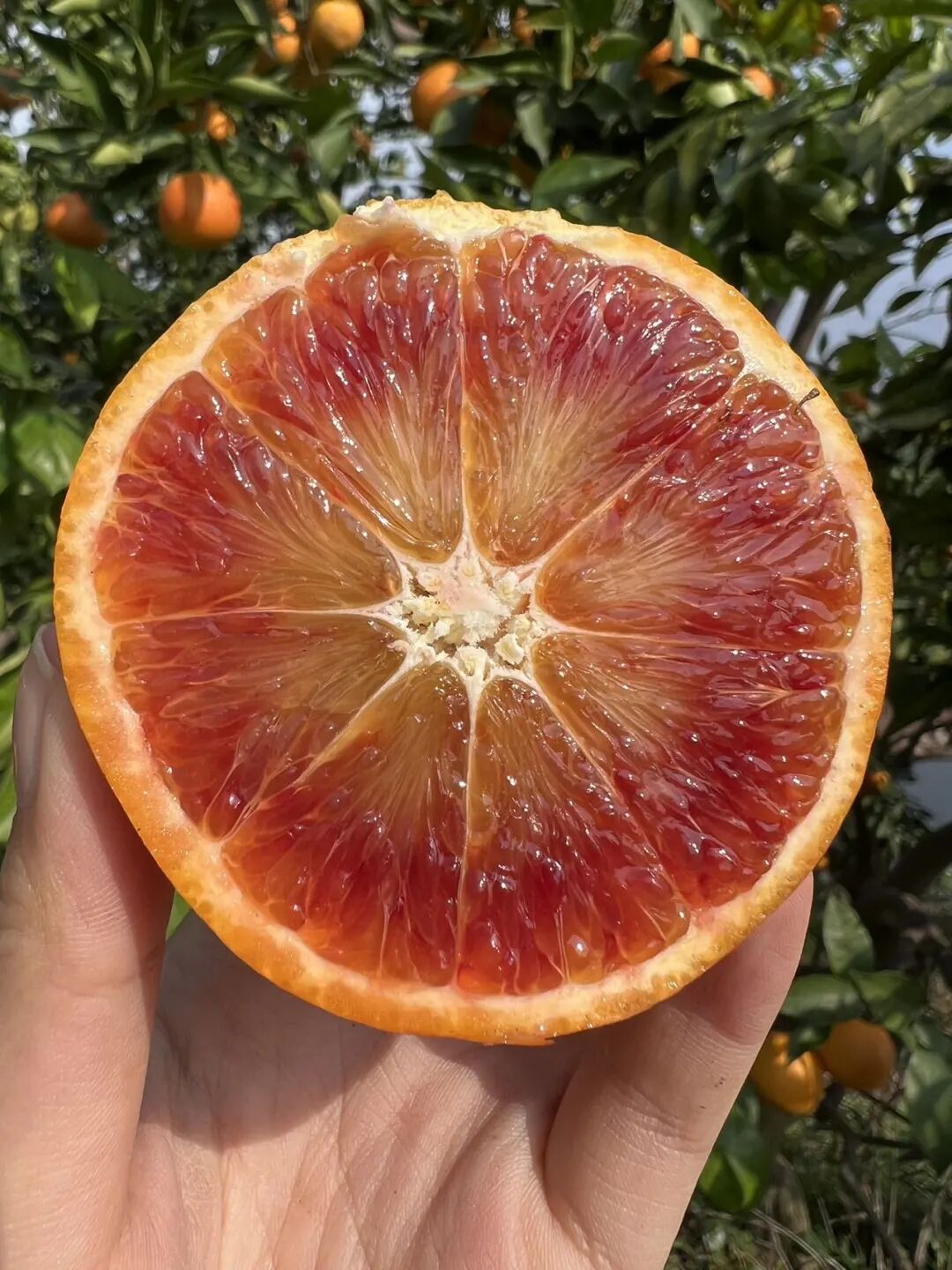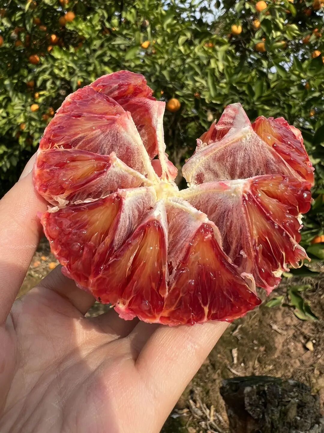 血橙的采摘标准糖分必须达到13°以上,随便一开都带有红色的印记,丝丝缕缕耀眼绚烂。