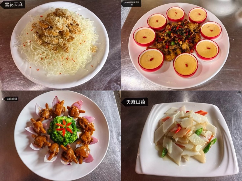 在德江县煎茶镇新场社区326国道旁的“知青小屋”,天麻炖土鸡、炝拌天麻、天麻蒸蛋等十余道以天麻为主角的“天麻宴”香气四溢,成为德江天麻药食同源的生动实践。