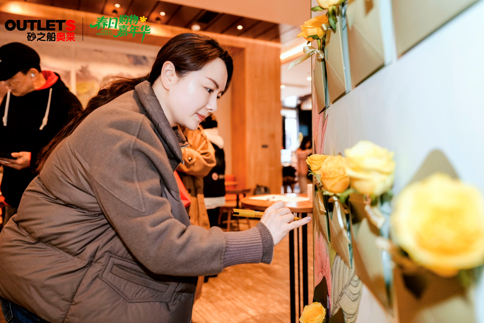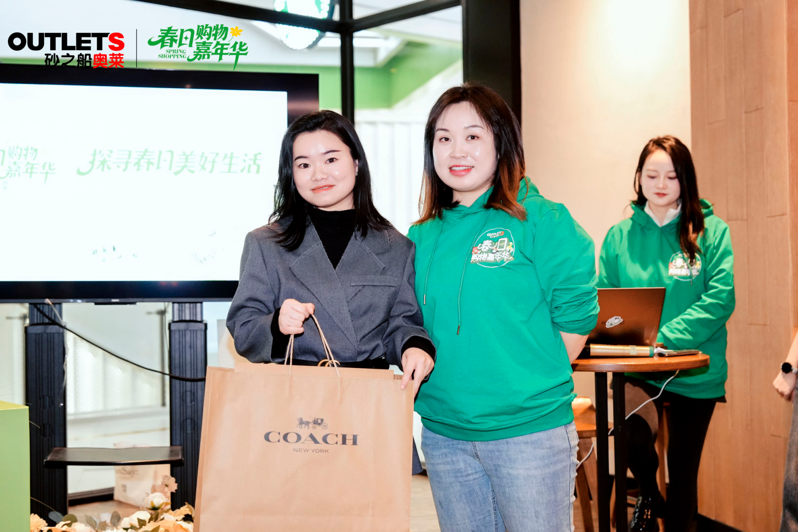 工作人员提醒伴手礼领取,通稿发布信息同步预告。春日不等人,折扣已就位。