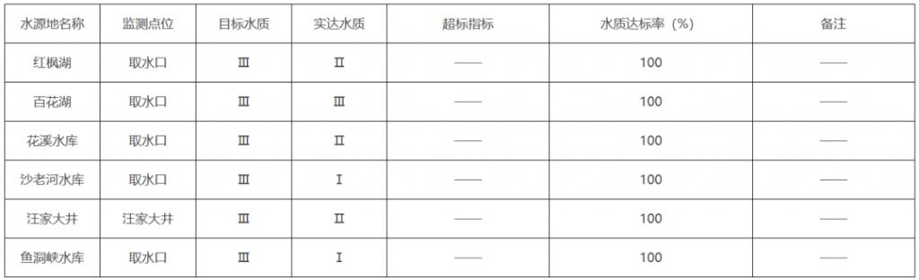 据悉,贵阳市中心城区主要有 6 个集中式饮用水源地,包括 5 个湖库型水源和 1 个河流型水源,分别为汪家大井(东郊水厂)、红枫湖(西郊水厂)、百花湖(白云水厂)、花溪水库(碧云窝水厂)、沙老河水库(北郊水厂)和鱼洞峡水库(鱼洞峡水厂)。监测项目执行《地表水环境质量标准》(GB3838-2002)表 1、表 2(除 CODCr 外)的 28 项及表 3 前 35 项,合计 63 项,湖库型水源地同步监测叶绿素和透明度。城区水源地每月监测一次,每次监测一天,监测结果均符合国家标准,水质监测结果见下表。▲ 2026 年 2 月份贵阳市向城区供水的集中式饮用水水源地水质监测结果