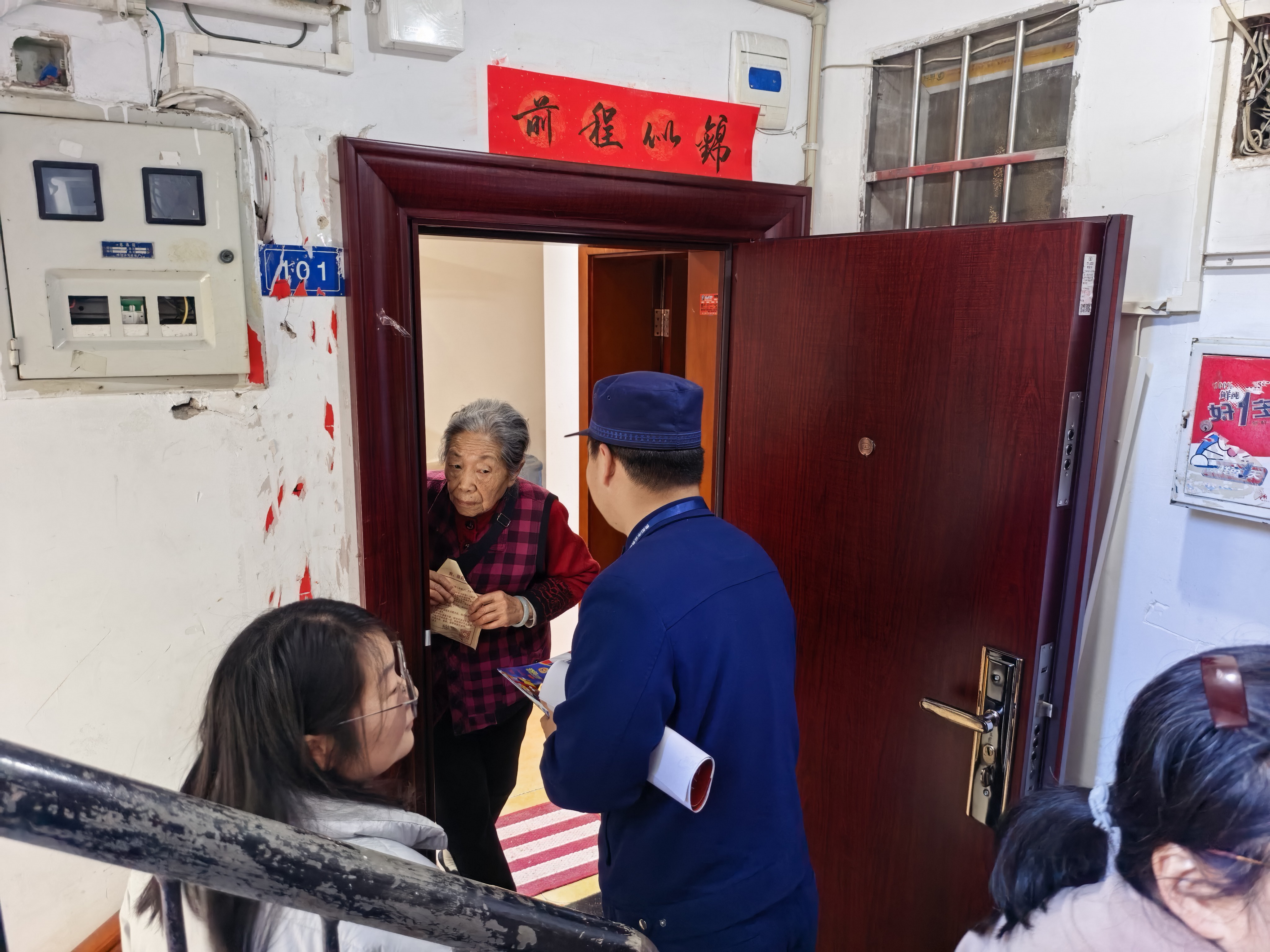 消防员走访入户辖区居民,面对面讲解消防安全知识。在居民家中,消防员仔细查看用火用电用气情况,提醒居民及时清理阳台、楼道堆放的杂物,检查燃气管道、电器线路是否存在老化隐患;在社区院落里,消防员向老年群体等重点人群发放宣传手册,用通俗易懂的语言讲解火灾逃生技巧、初期火灾扑救方法等内容,耐心解答群众提出的消防安全疑问。