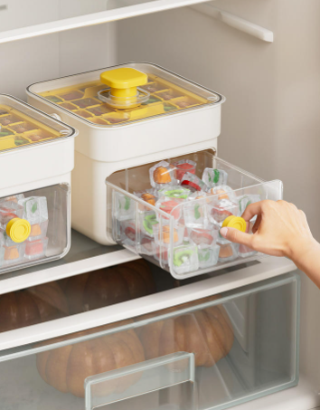 告别“掰手腕式”取冰!这款冰格采用按压式设计——冻好之后,只需轻轻一按底部,整颗冰块瞬间弹出,完整不碎、不粘手。小朋友都能轻松操作,再也不用对着冰格干着急。