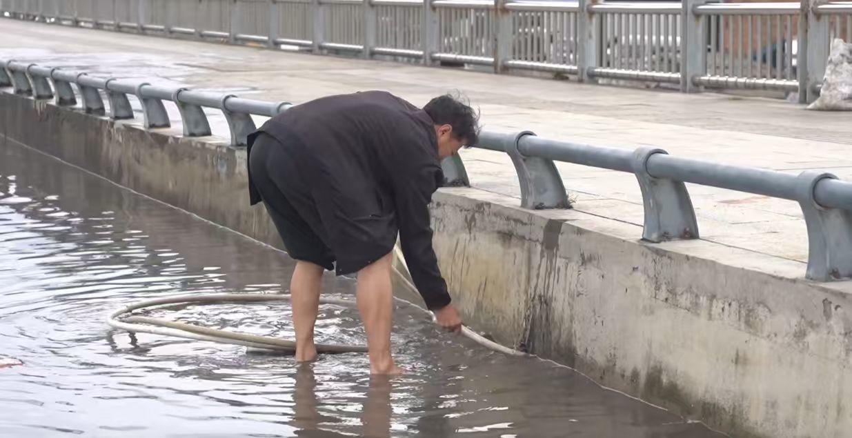 马王街道城市管理办公室案件负责人彭静告诉记者,由于道路前期施工时留下的问题,导致积水无法排除,而工作人员也没有专业的工具,只能对积水路段做好安全提示,让污水缓慢排走。