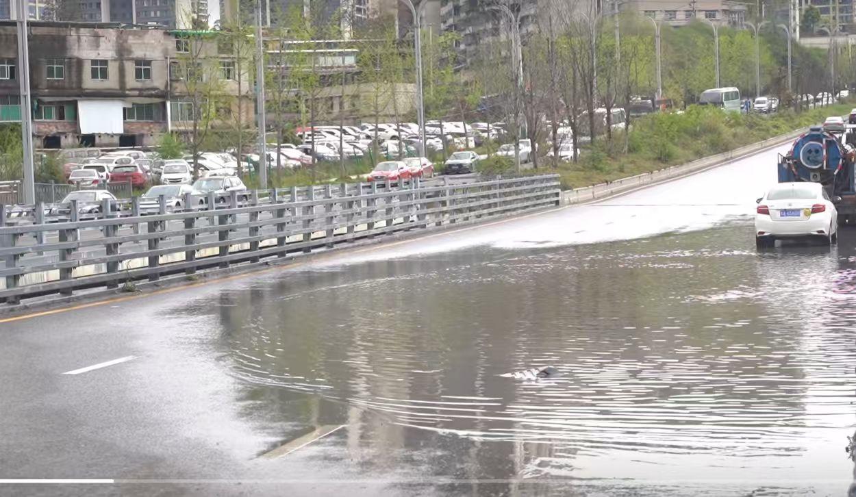 3月31日早上,记者来到贵阳市云岩区云飞路看到,积水路段长约10米,这一路段为单向三车道,积水最为严重的一处,已经快要将路面全部覆盖。过往市民告诉记者,由于前一天晚上的降雨,加上道路排水不畅,导致了雨水在这里积存。而停靠在路边的一辆轿车,一直被溅起的水花冲着“污水澡”,人行道上也有不少水花的印记。