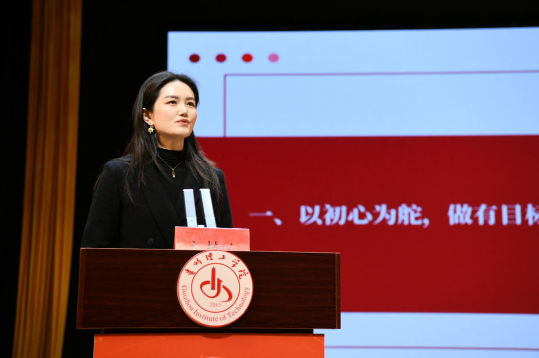 颁奖结束,贵州理工学院经济管理学院唐惠副教授为学生代表赠送了贵州理工学院校徽。接着,唐惠副教授以《终生学习,破局成长》为题进行了新生第一课教育。