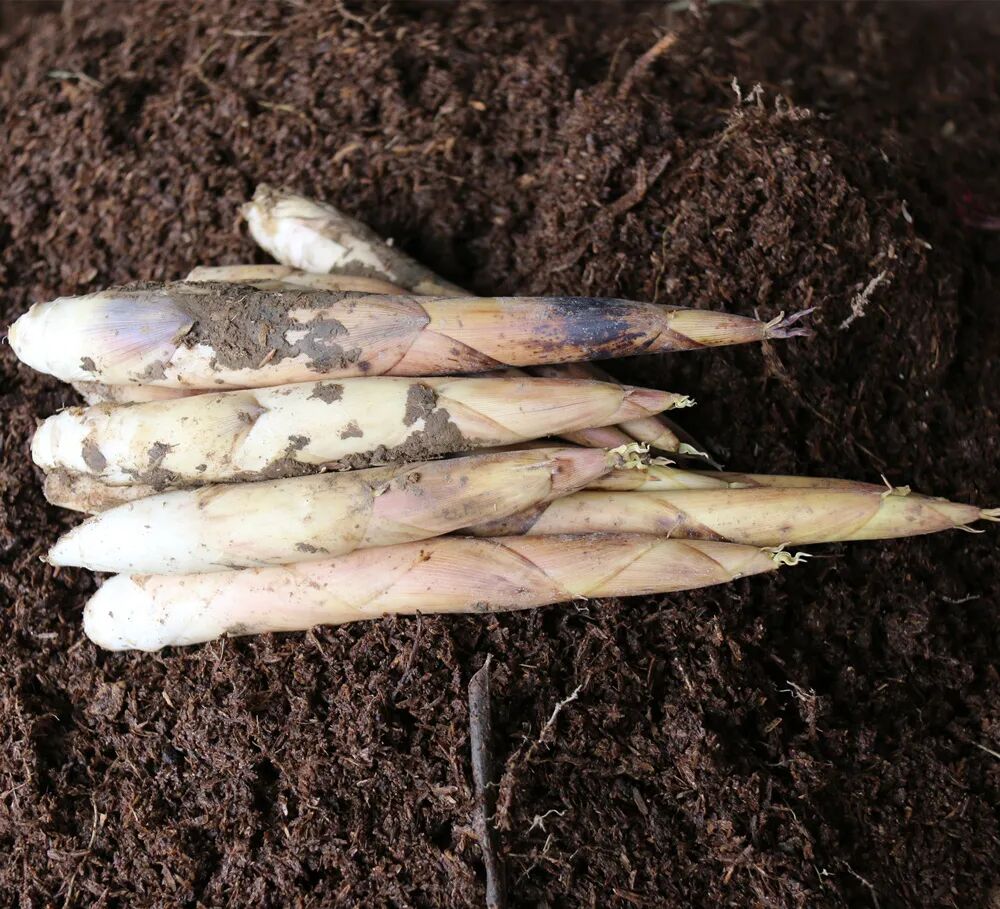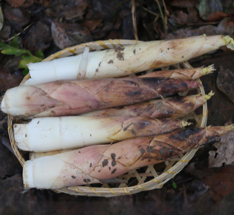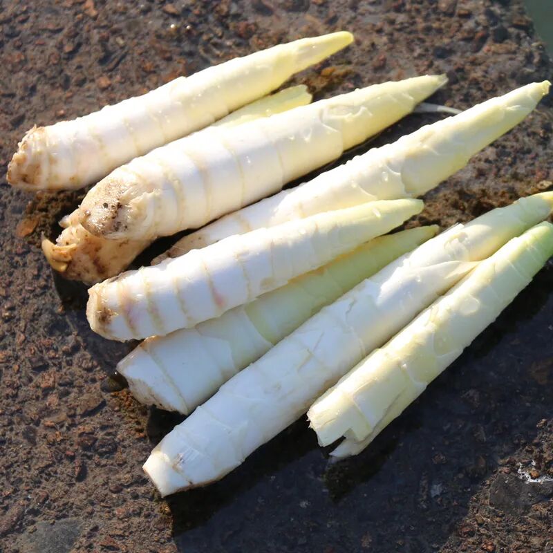 笋是竹初生的嫩芽,在太阳升起前采摘的笋才是鲜嫩的,挖出后立即生食入口无渣,竹的清香,微甜无涩。