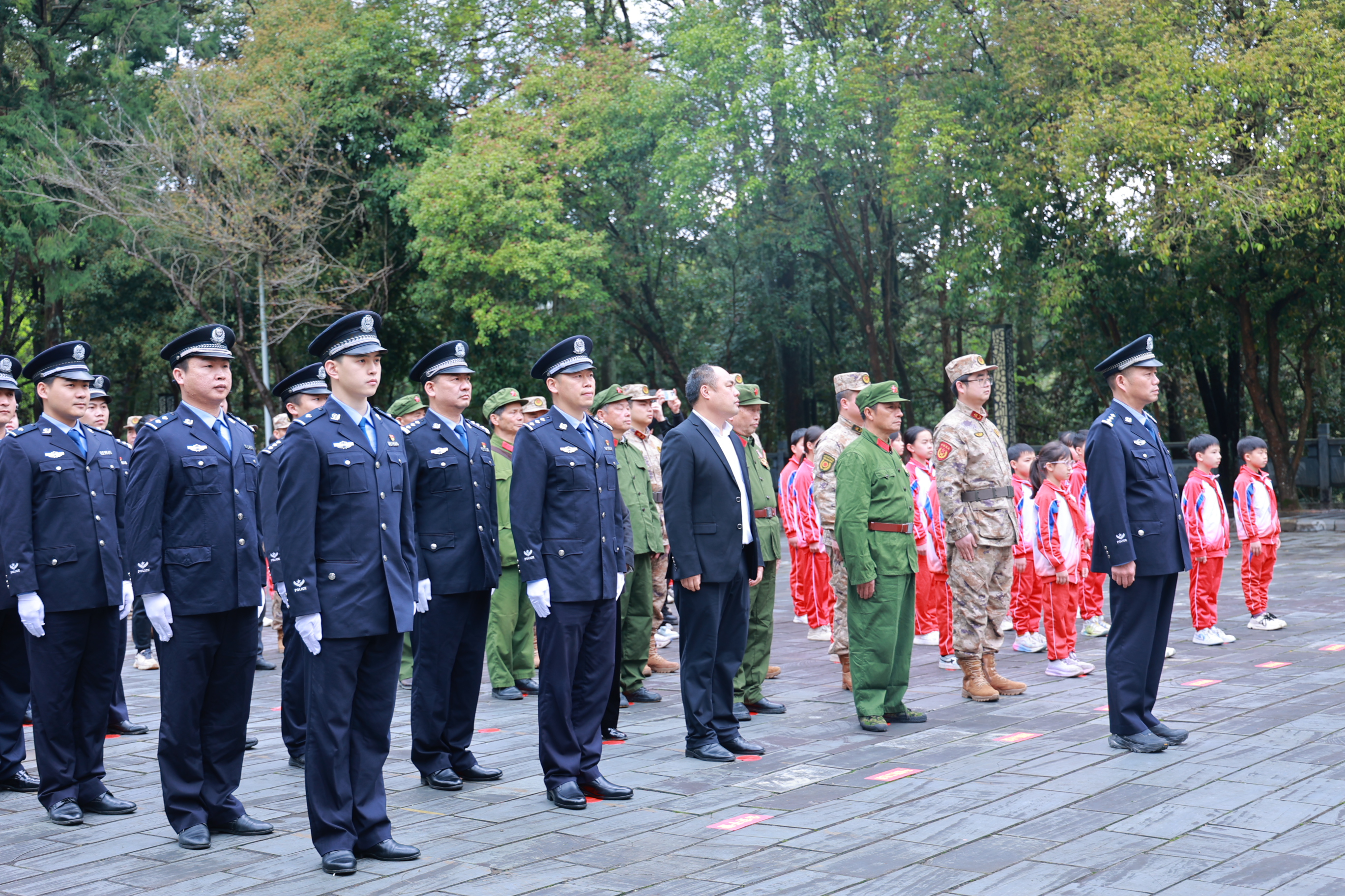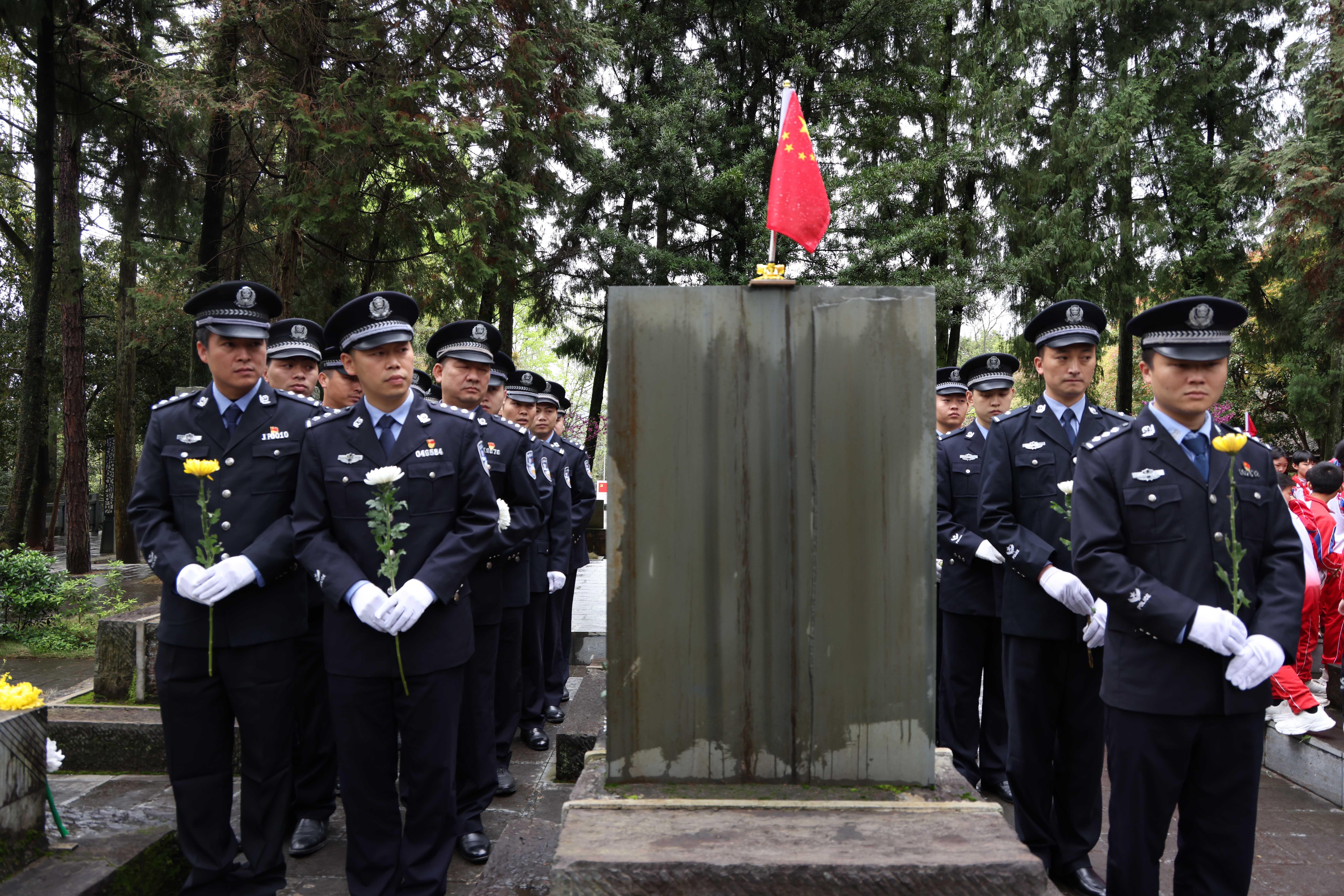 活动中,全体人员列队整齐,集体默哀,向英雄烈士行三鞠躬礼,表达对先烈的无限追思与崇高敬意。民辅警警容严整,迈着铿锵有力的步伐,向革命烈士纪念碑敬献了花篮,寄托对英烈的无限追思。