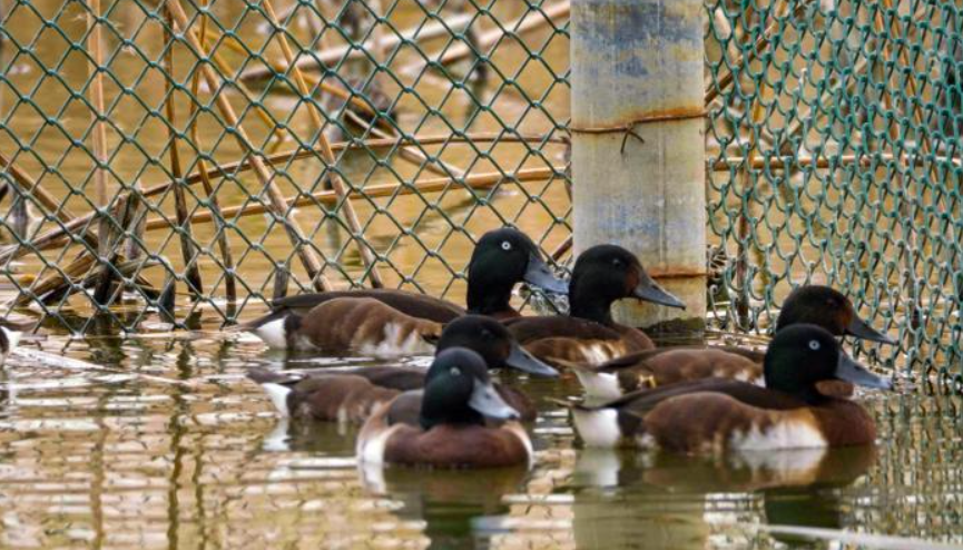 4月2日,12只经自然繁育并完成野化训练的青头潜鸭在河北衡水湖国家级自然保护区放飞。2022年,北京林业大学、河北衡水湖国家级自然保护区管理委员会与北京动物园管理处联合启动青头潜鸭自然繁育与野化放飞研究项目。2025年,三方成功在衡水湖建立全球首个青头潜鸭自然繁育种群,目前已繁育23只个体并完成野化训练。